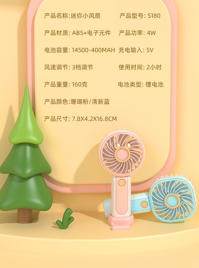 Ventilador de mano transfronterizo nuevo, recargable por USB con base, mini ventilador portátil para estudiantes al aire libre, regalo pequeño