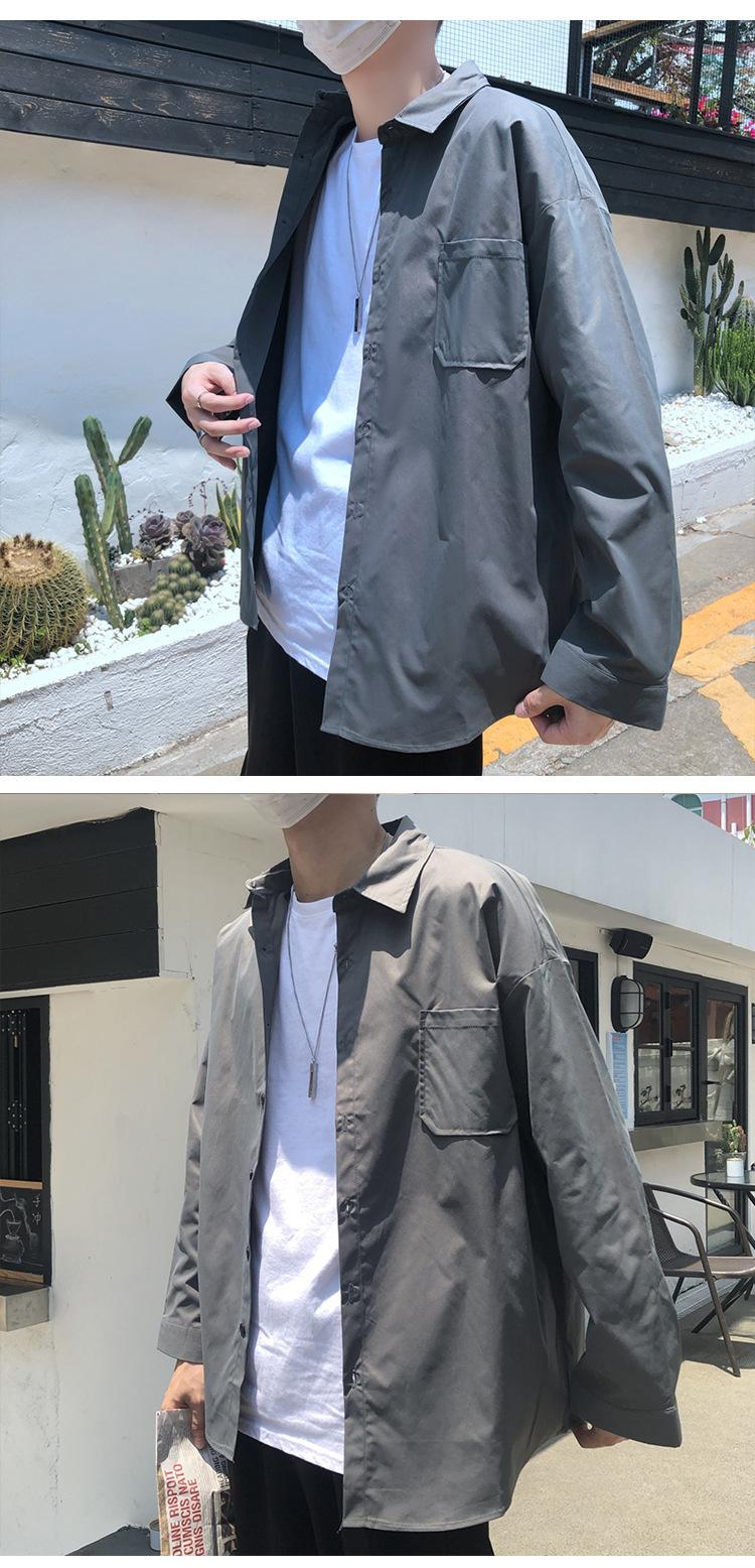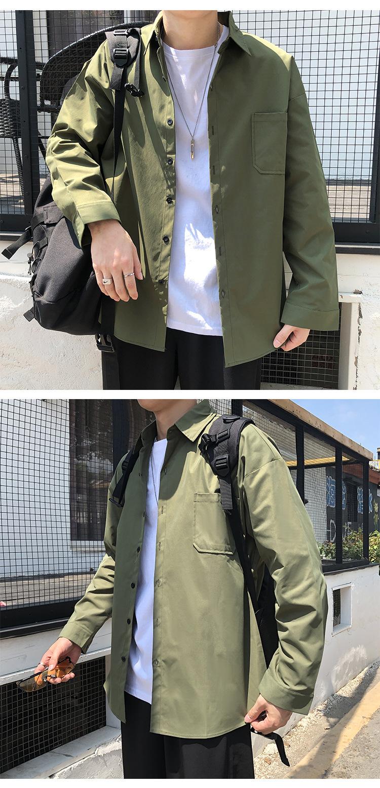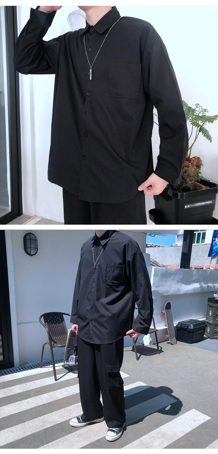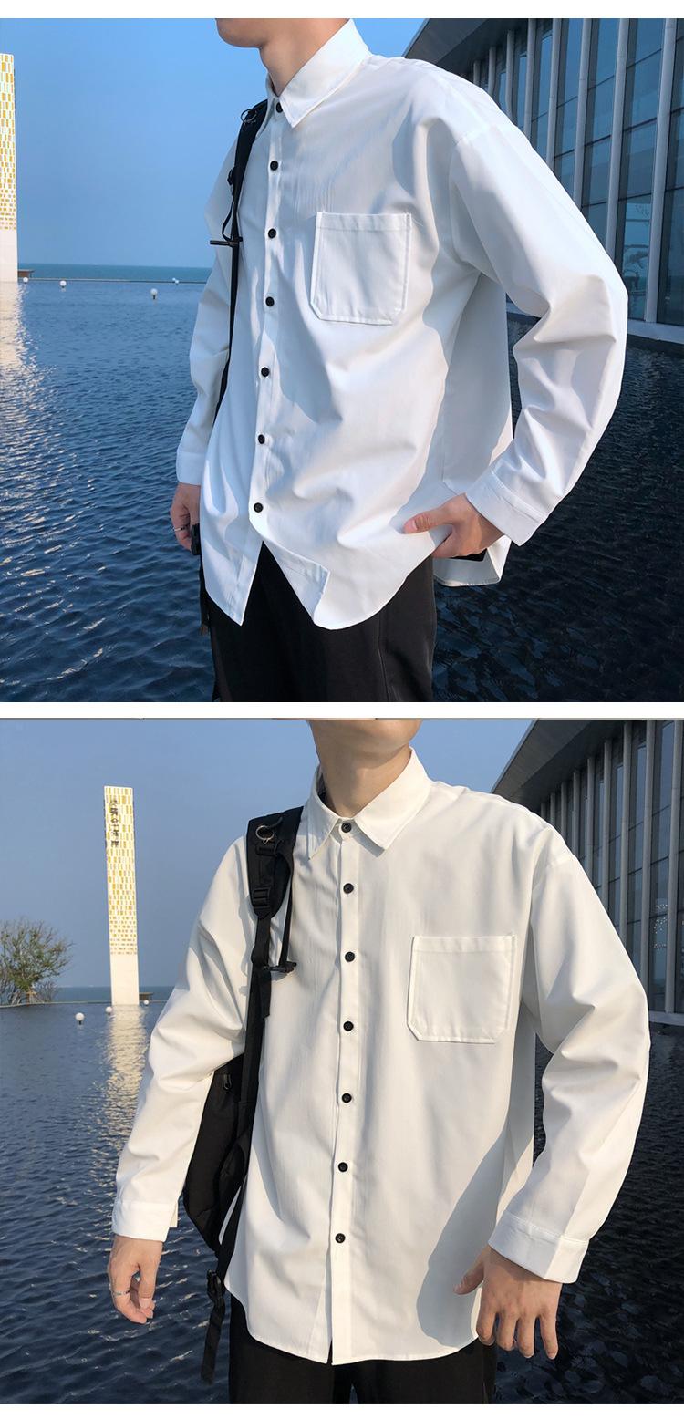 Camisa de color sólido de otoño, estilo coreano, moderna, elegante, holgada, camisa fina para hombre, abrigo informal de manga larga, estilo Hong Kong ins