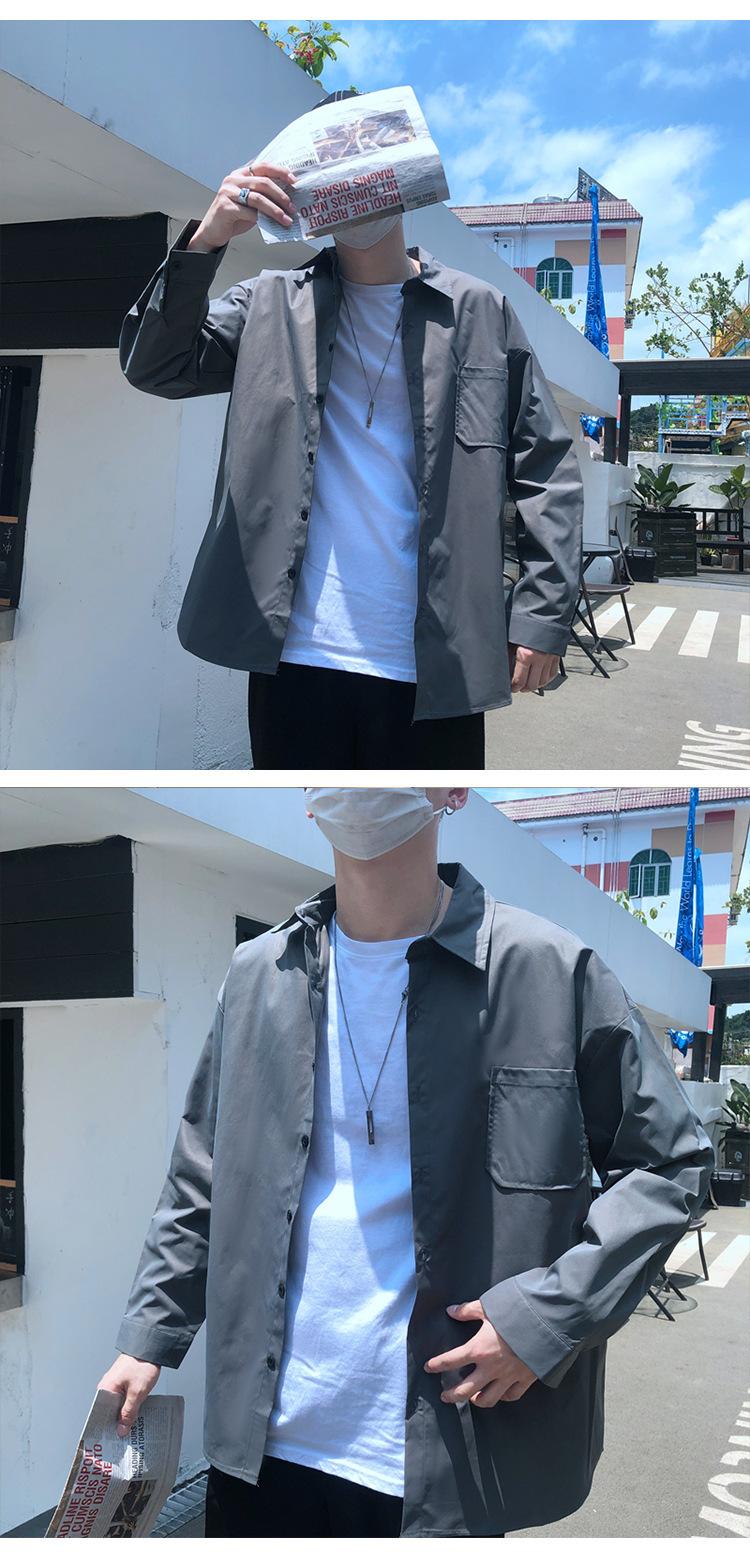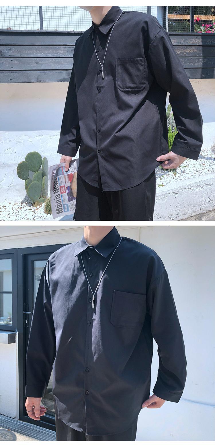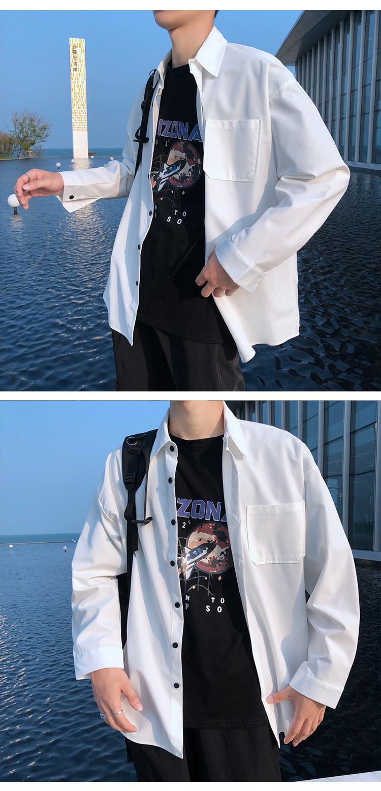 Camisa de color sólido de otoño, estilo coreano, moderna, elegante, holgada, camisa fina para hombre, abrigo informal de manga larga, estilo Hong Kong ins