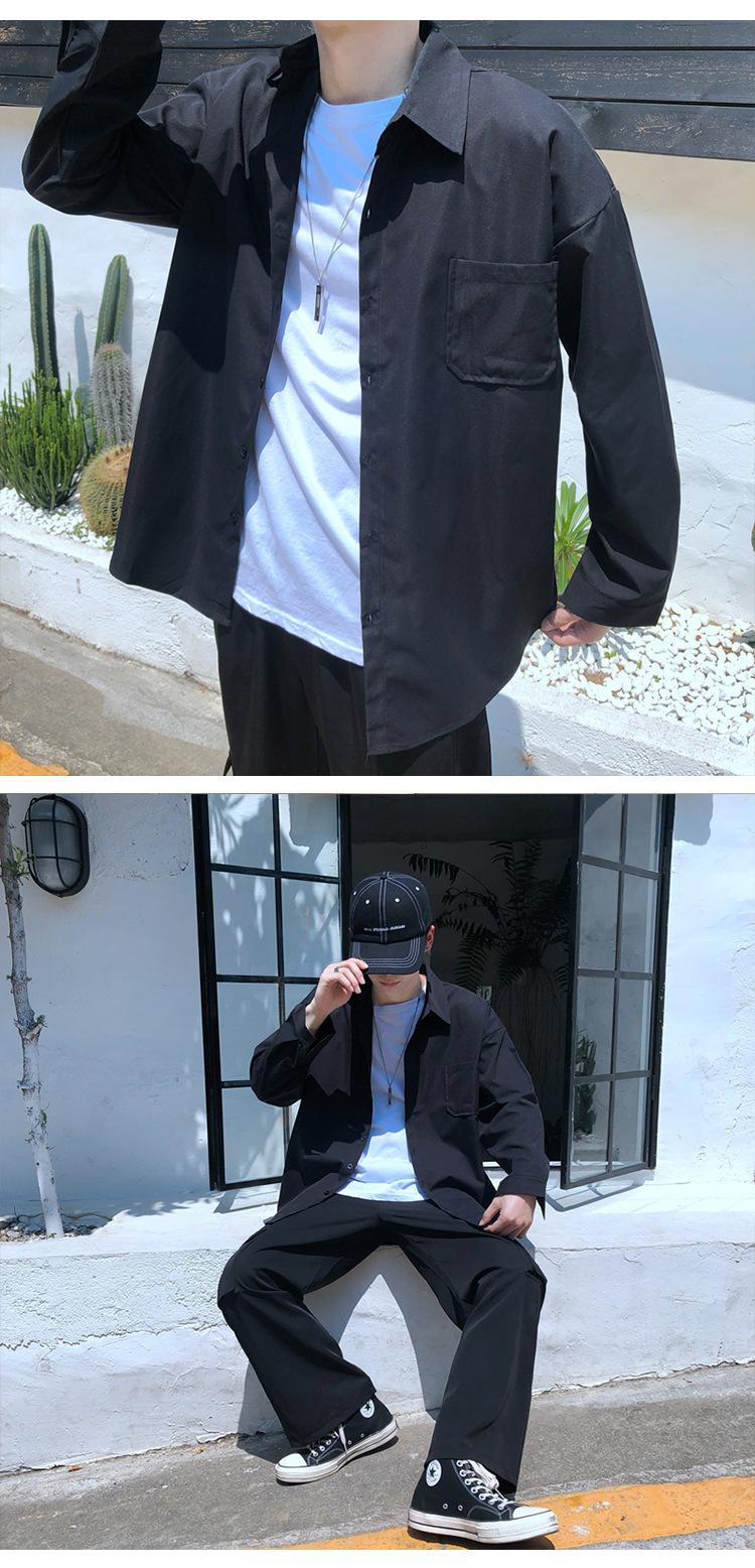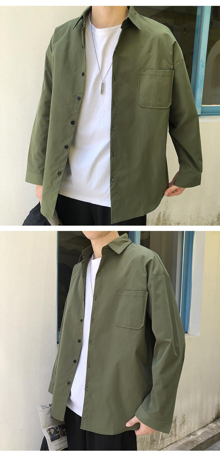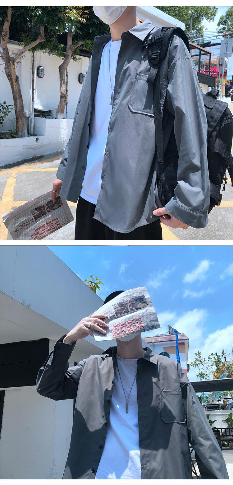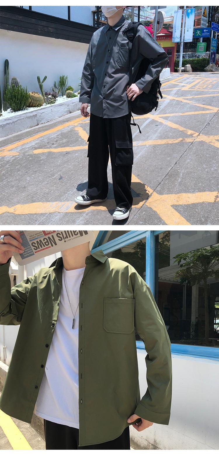 Camisa de color sólido de otoño, estilo coreano, moderna, elegante, holgada, camisa fina para hombre, abrigo informal de manga larga, estilo Hong Kong ins