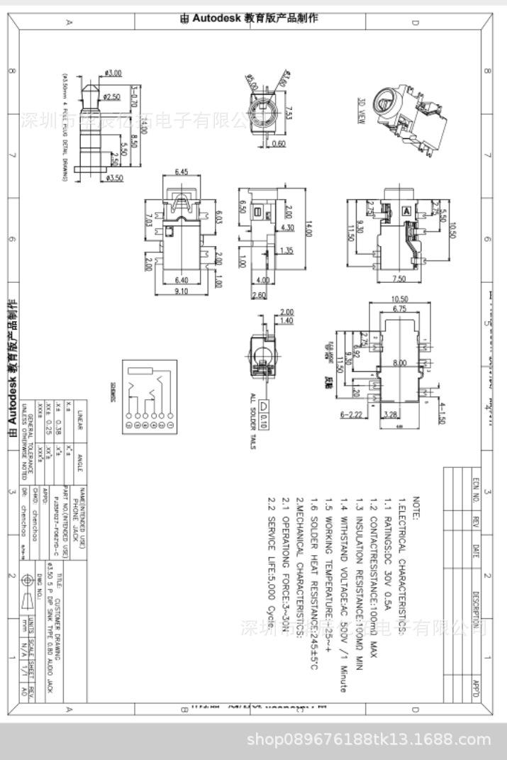 Conector de audio y vídeo PJ-342 de 3,5 mm con placa de disipación chapada en oro 3106D-3,5 mm