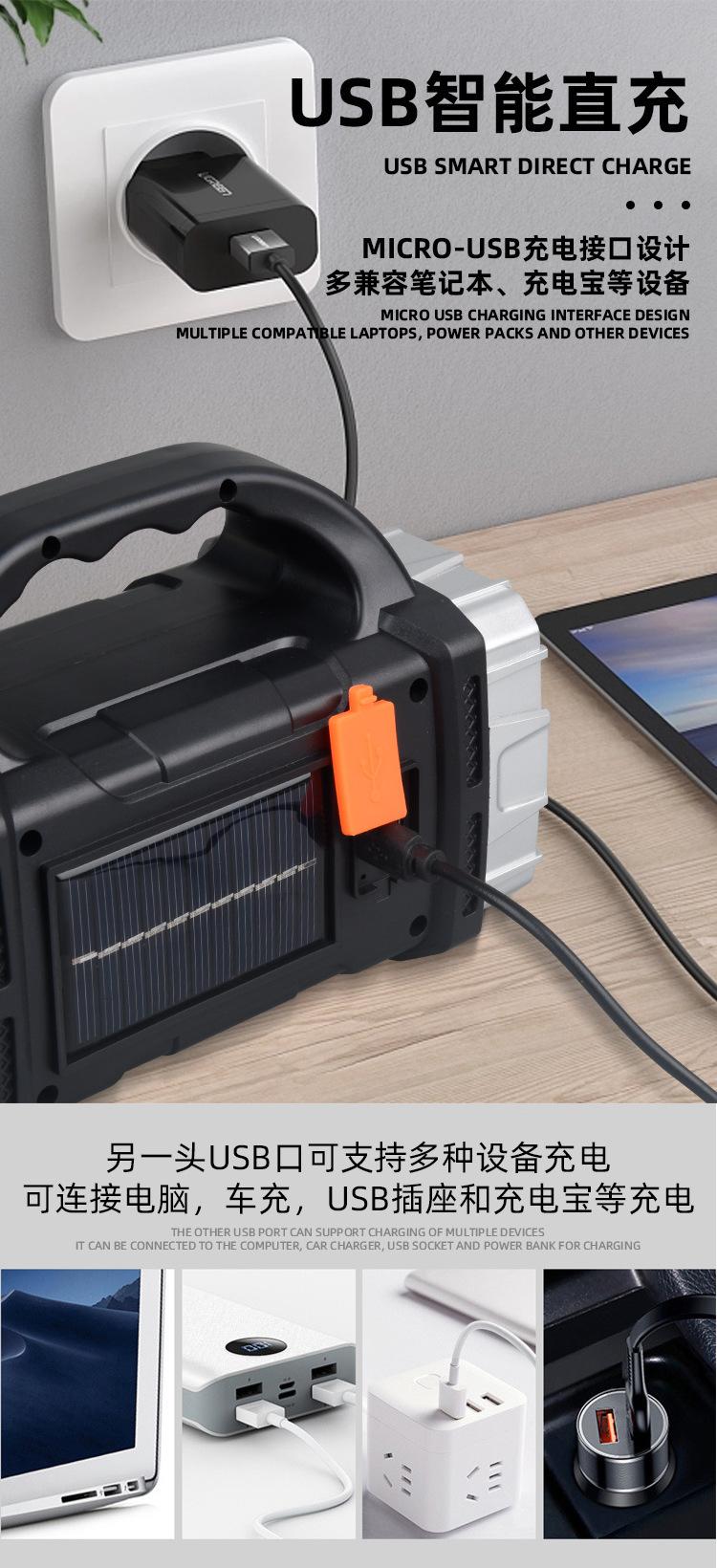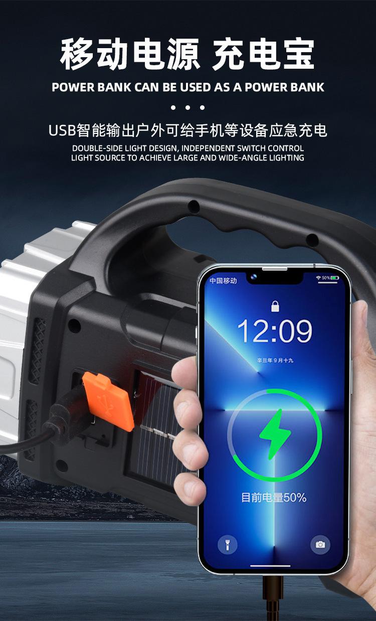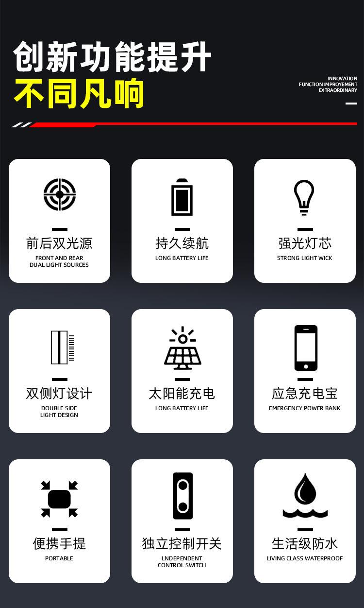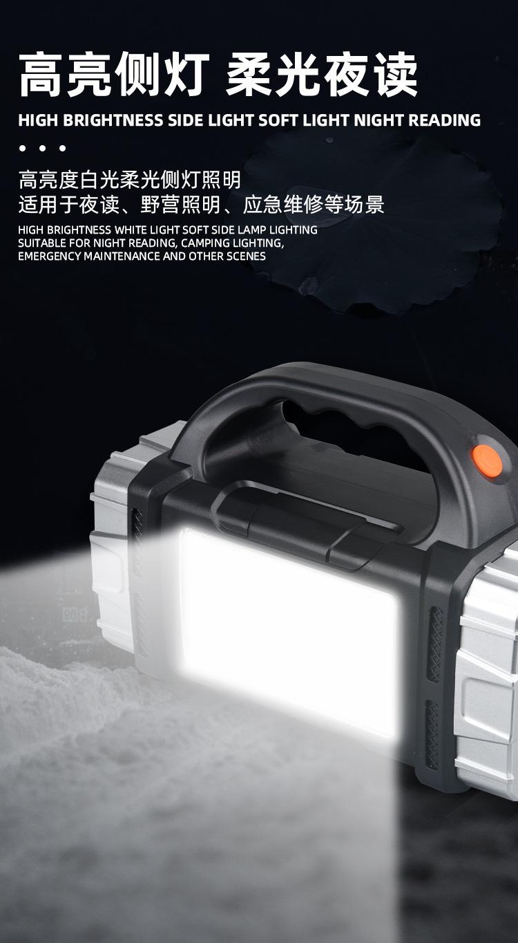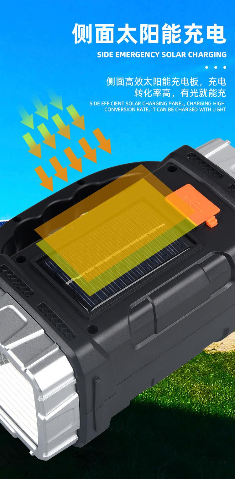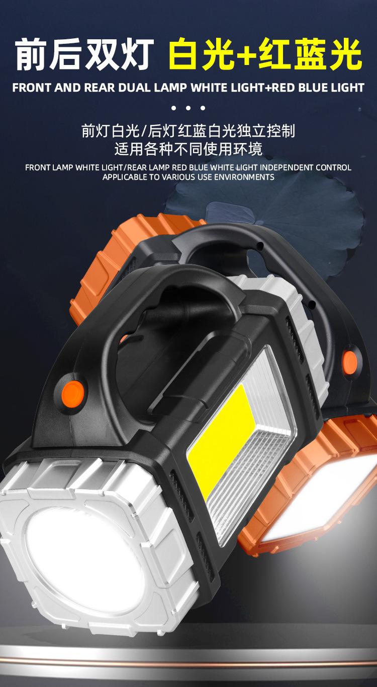 Lámpara portátil solar de doble cabezal para exteriores led multifuncional flash rojo azul luz lateral cob linterna de emergencia foco