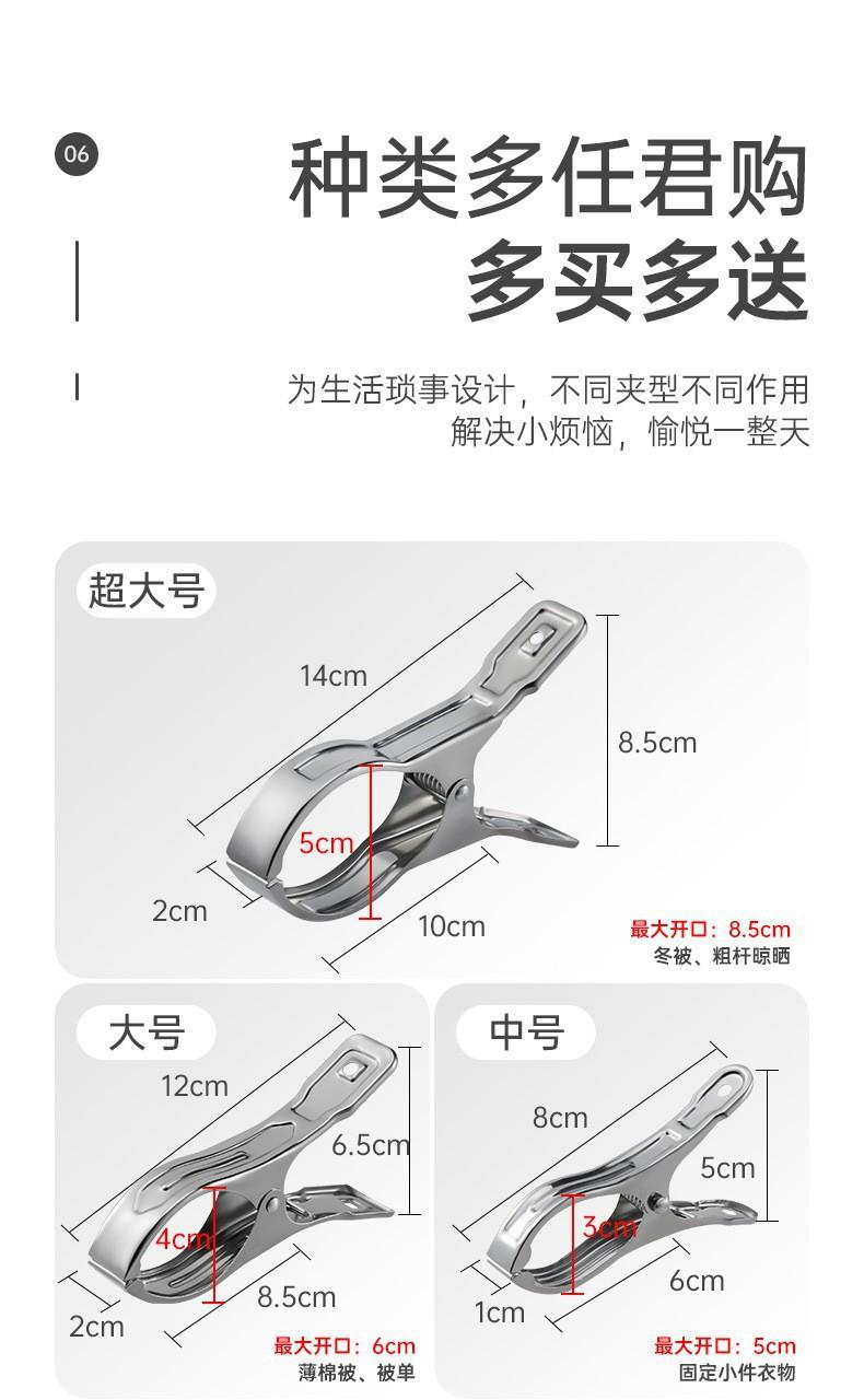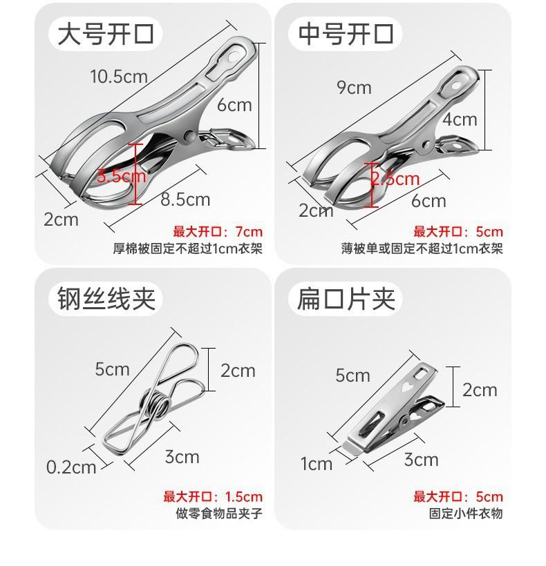 Clip de acero inoxidable, clip grande de metal para protección solar, percha resistente al viento, clip abierto para colcha, clip pequeño para secado de resortes.