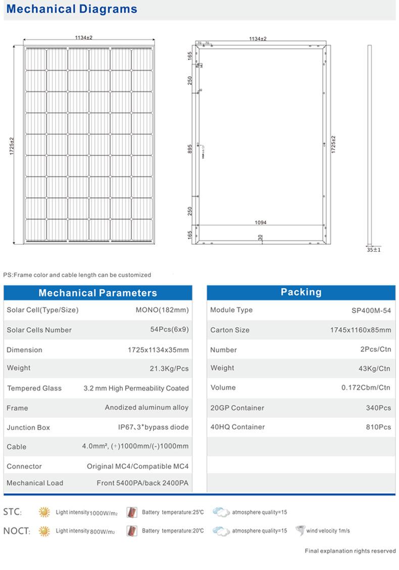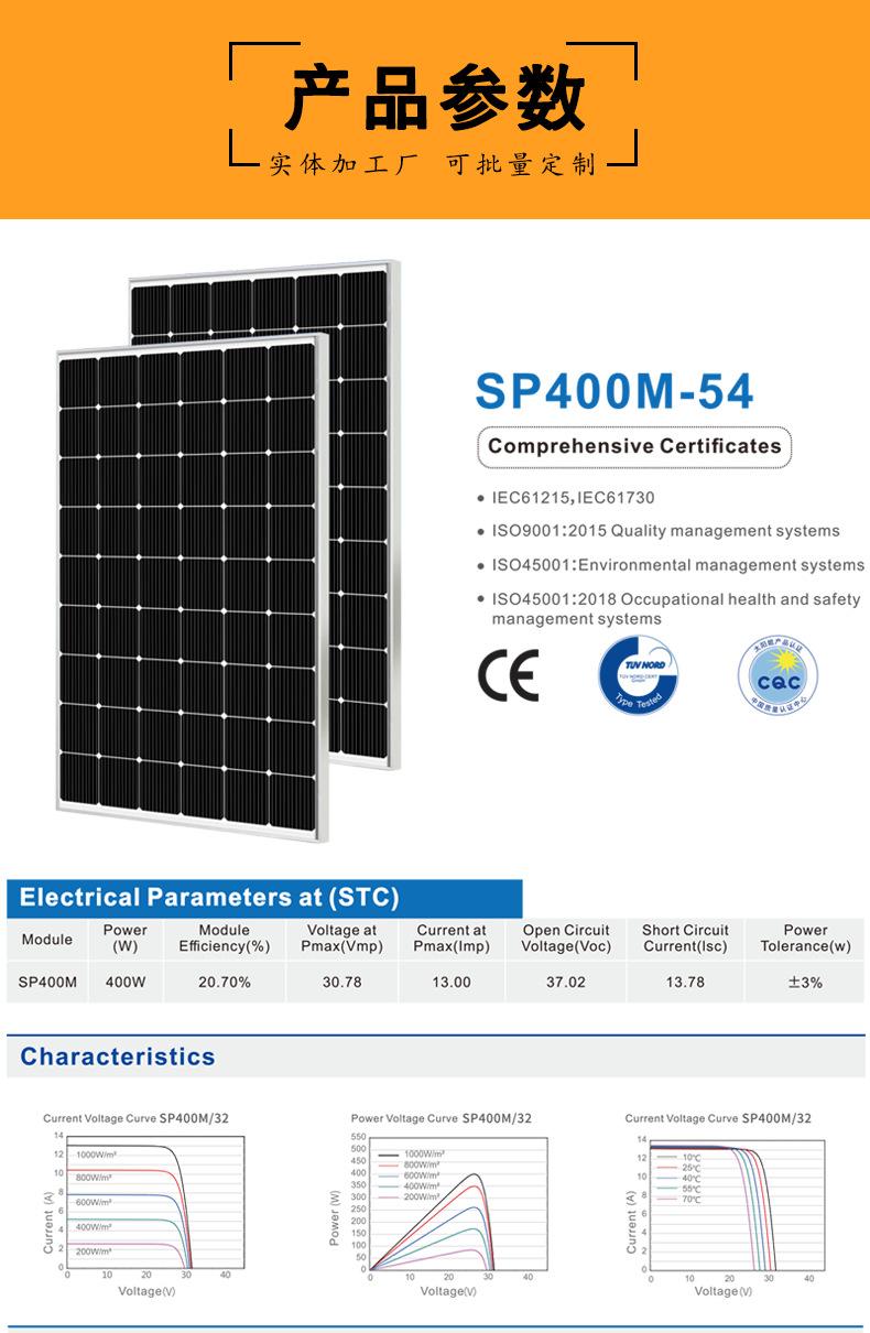 Panel Solar Monocristalino 400W Ingeniería Doméstico Cargador Exterior Fuente de Alimentación Exterior Módulo Fotovoltaico Alta Eficiencia