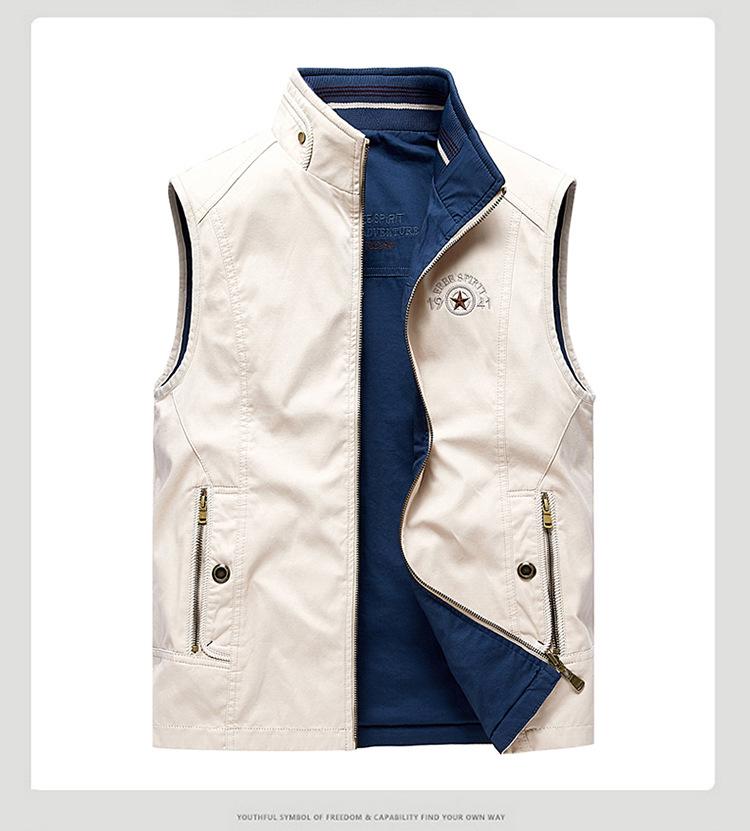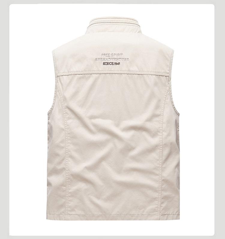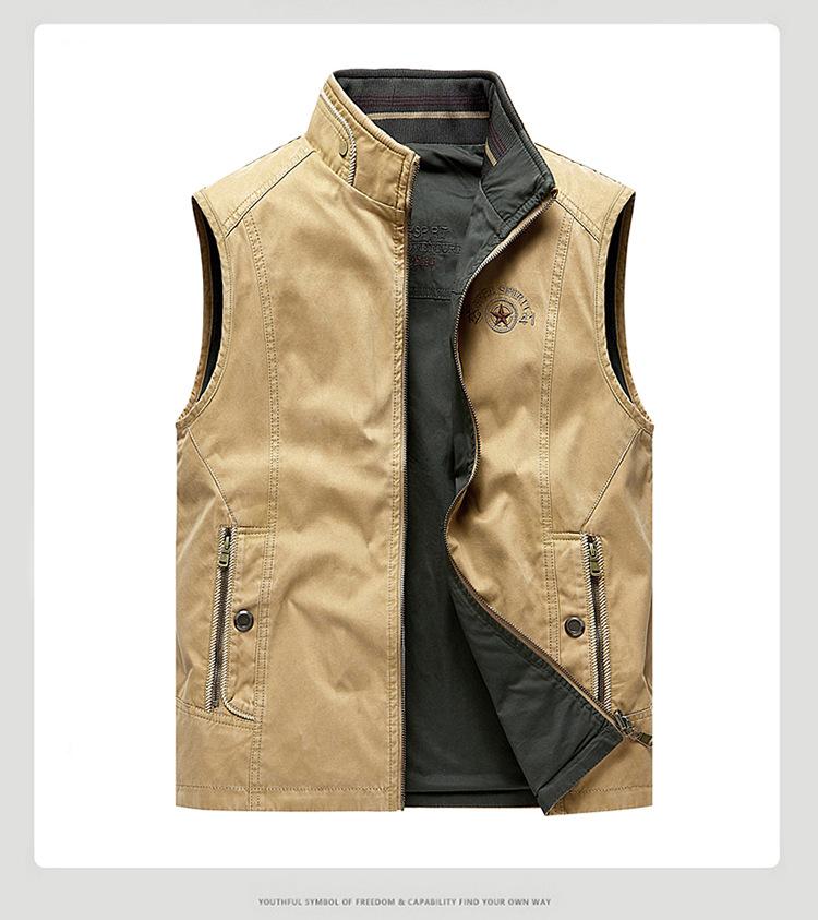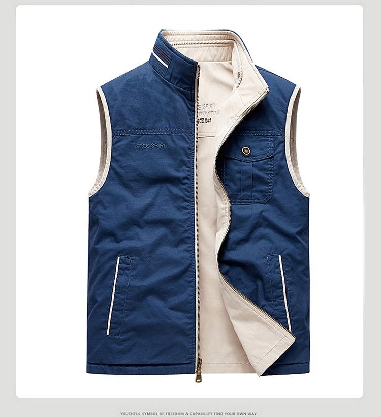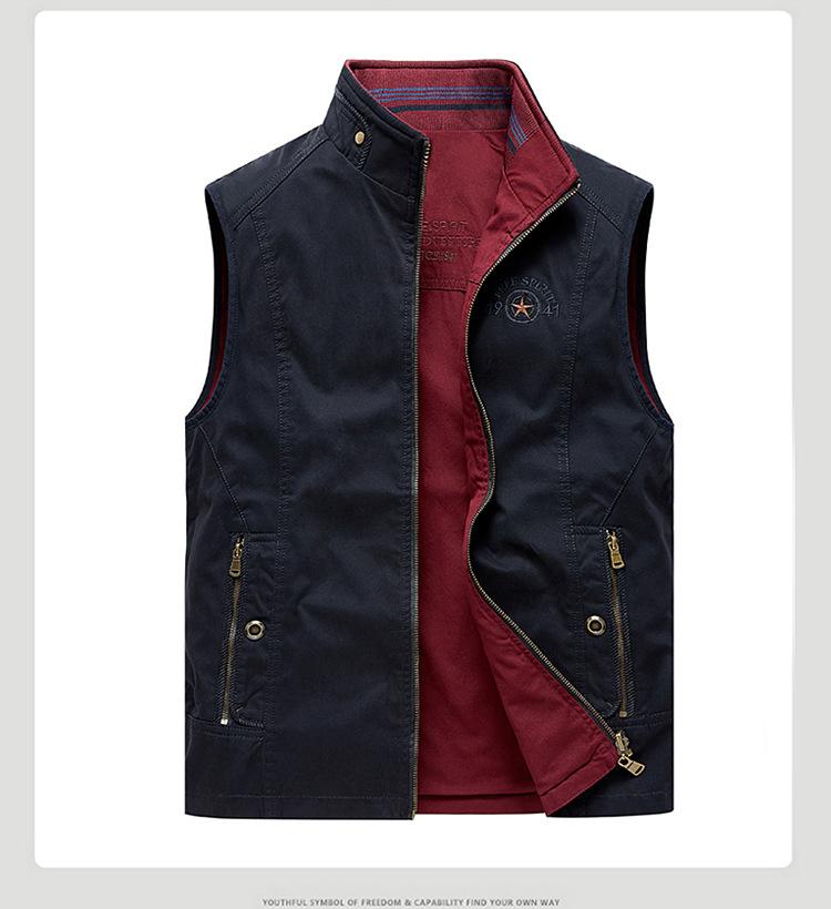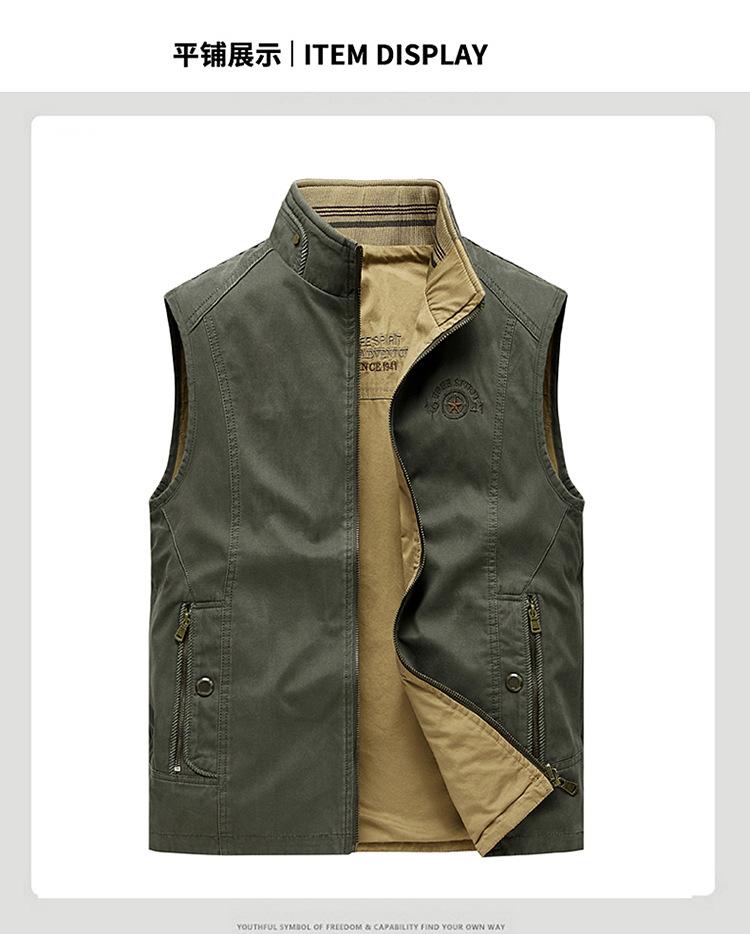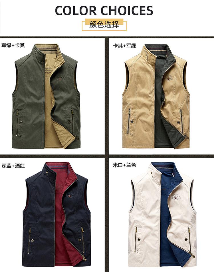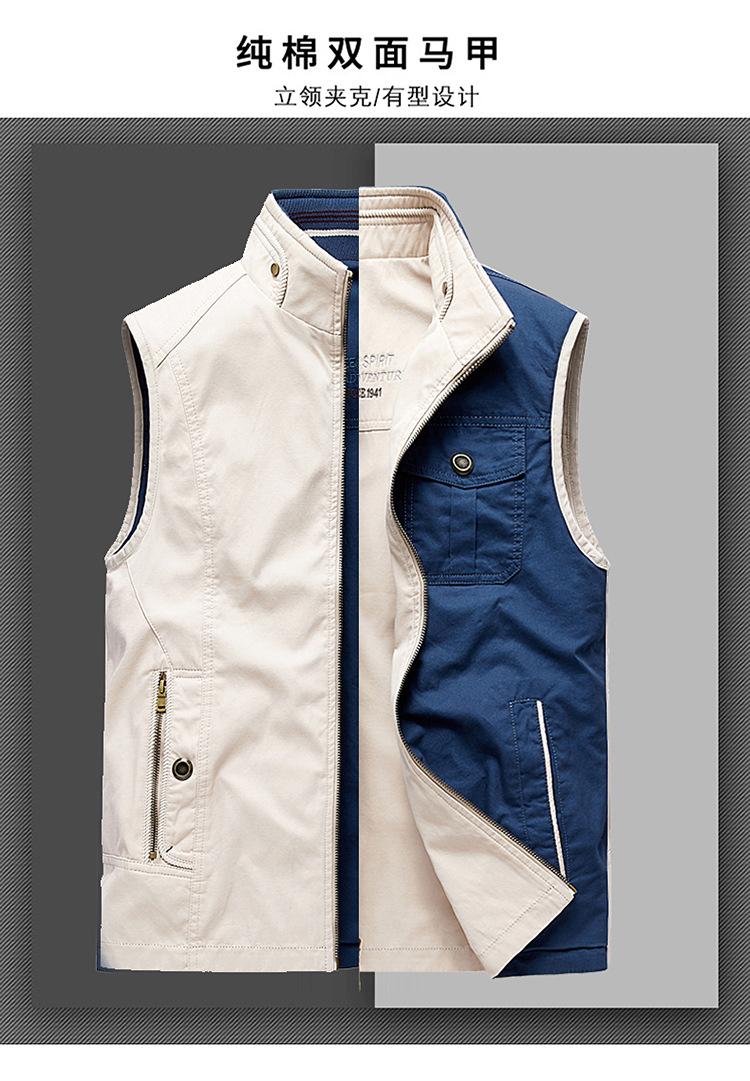 Otoño Nuevo Chaleco de Trabajo de Algodón Puro para Hombre Chaleco Reversible Ropa de Trabajo Retro Americana Chaqueta con Cuello Alto Chaleco