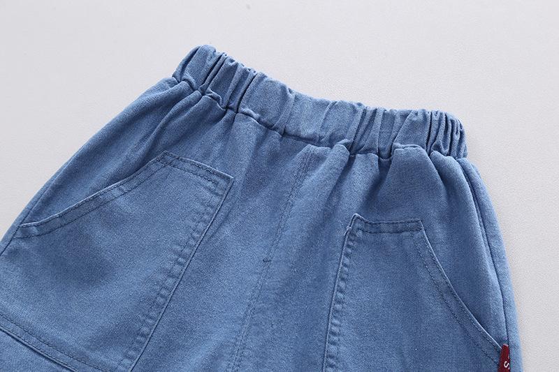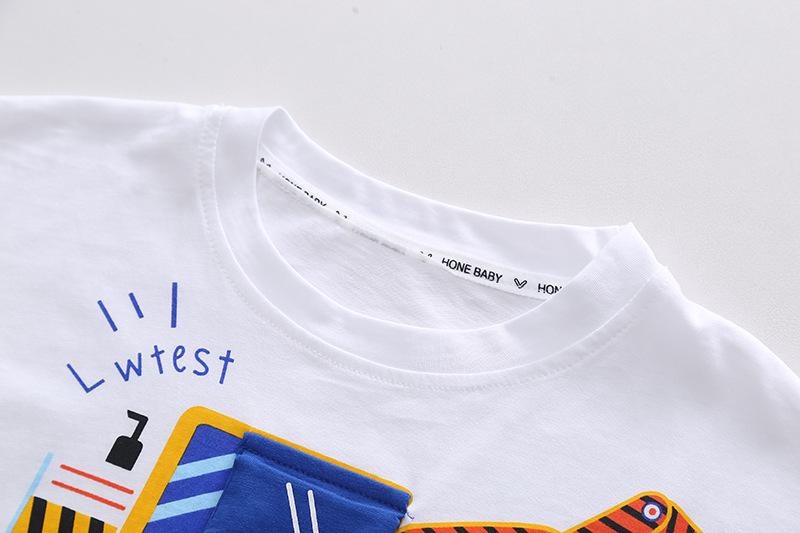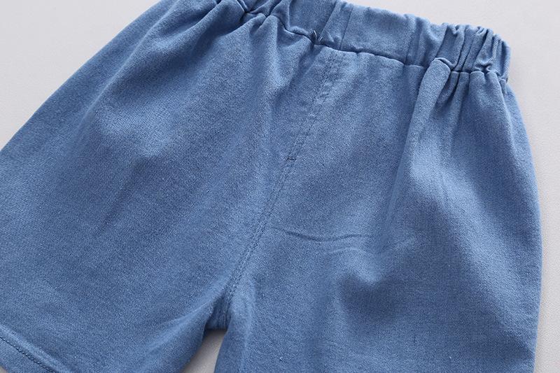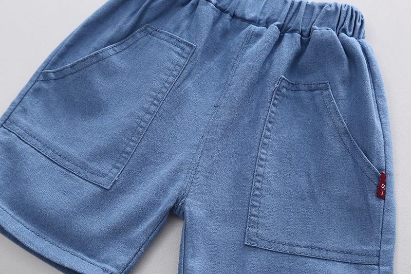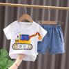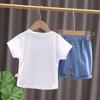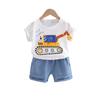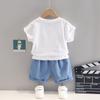 Conjunto de dos piezas de pantalones cortos vaqueros informales para bebé, traje de manga corta con cuello redondo y dibujos animados para niño, verano 2023
