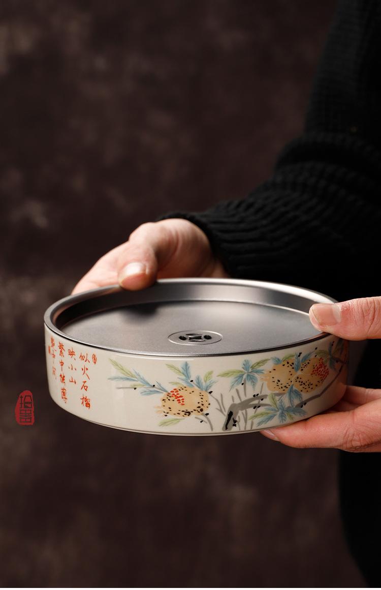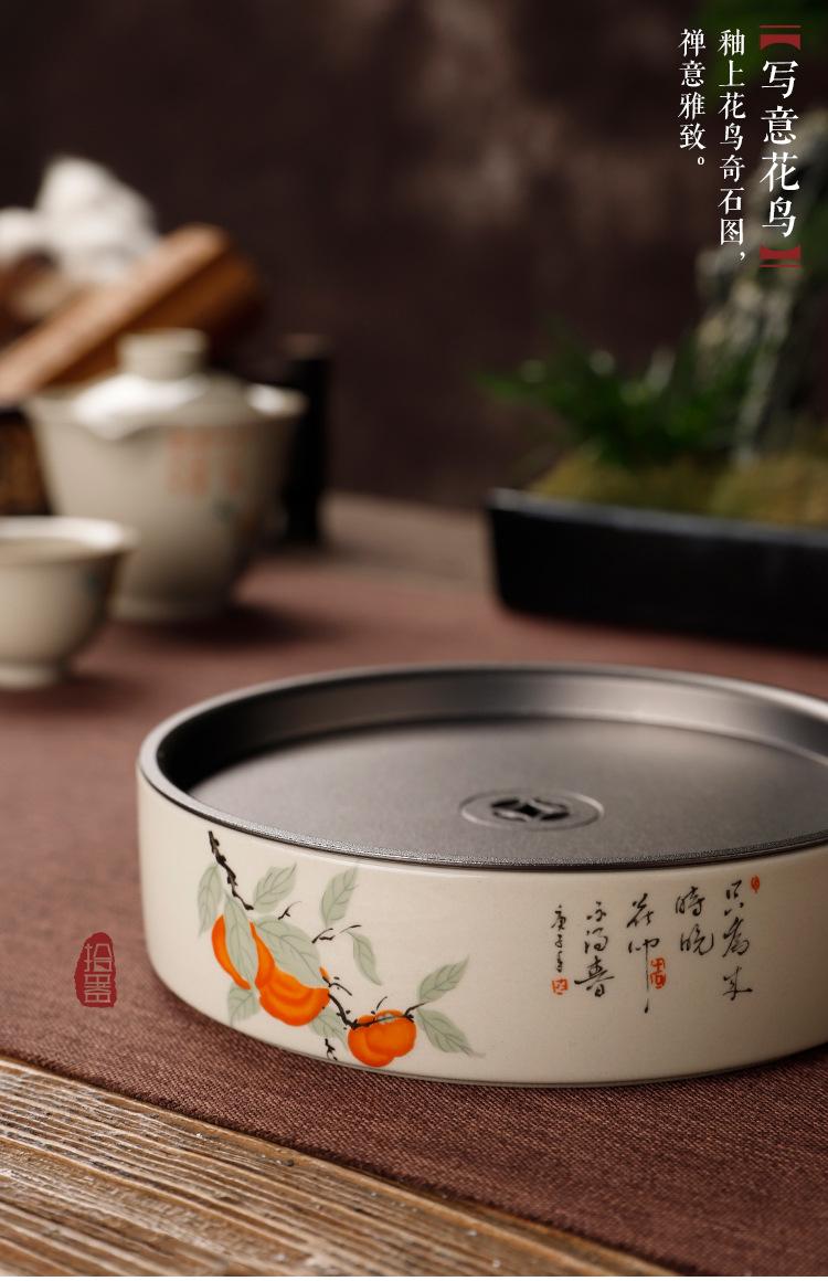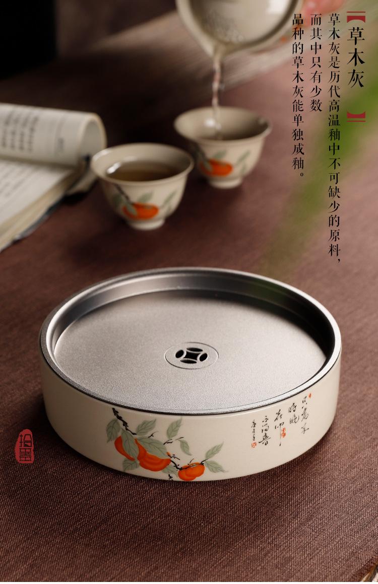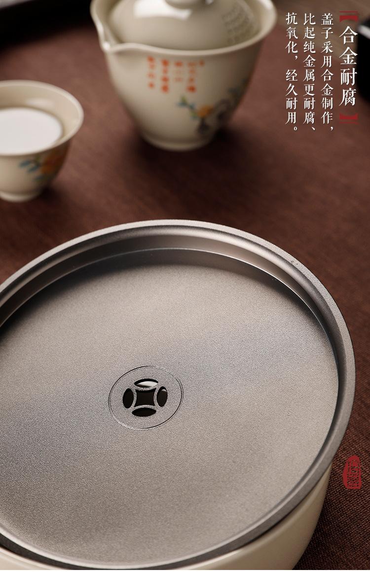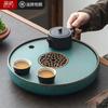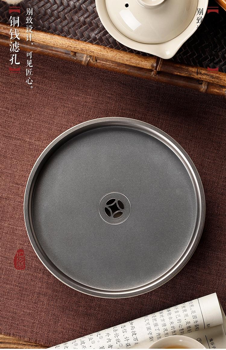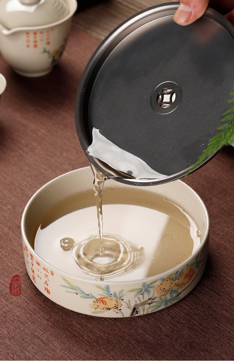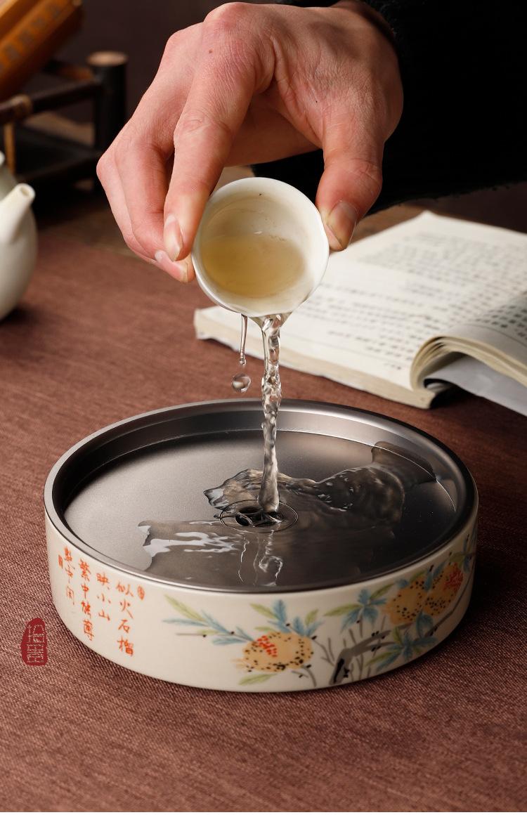 Bandeja de cerámica para almacenamiento de agua, juego de té Kung Fu, tapa de hojalata de metal, tetera de doble capa, mesa de té para preparar té en seco, hogar simple