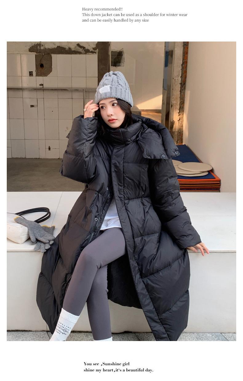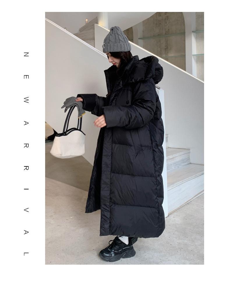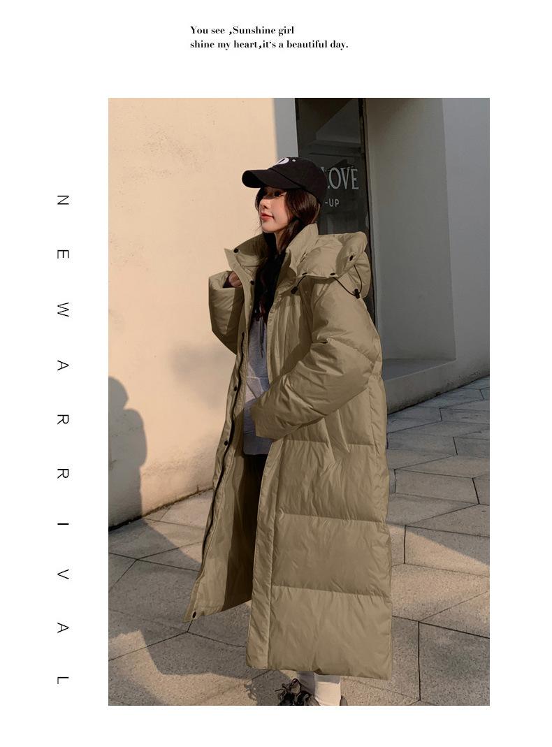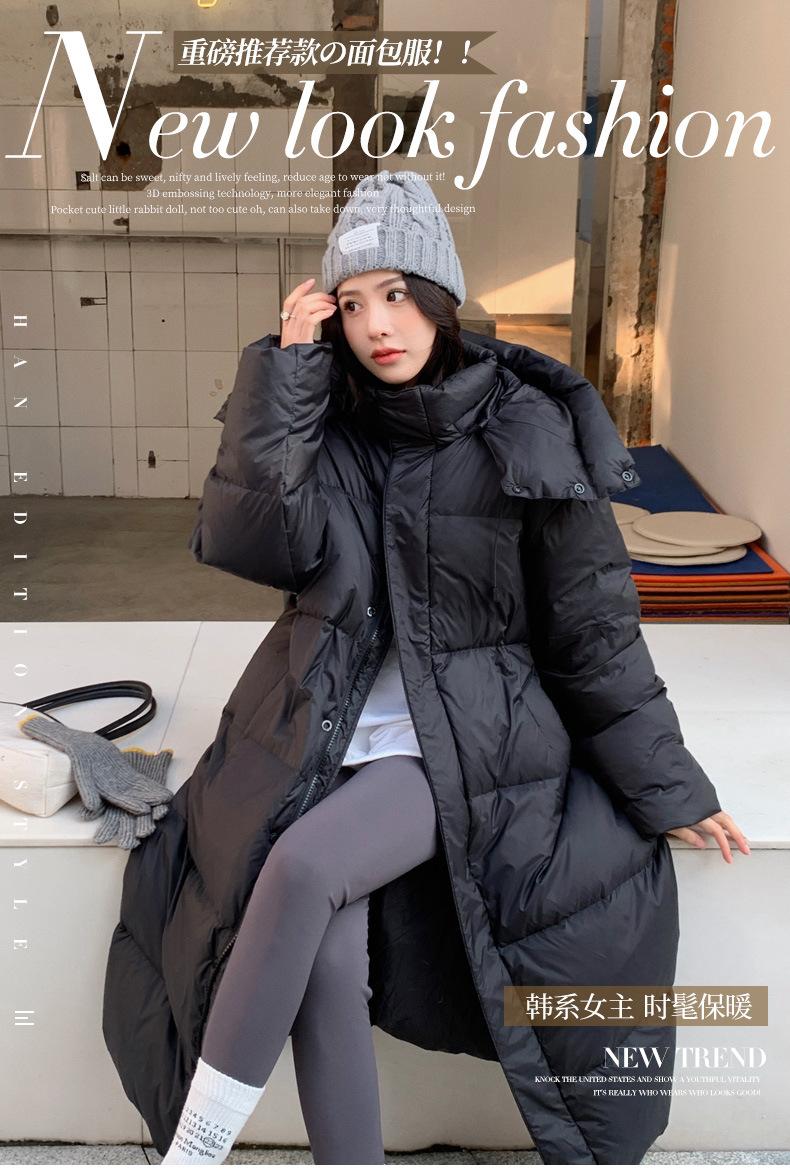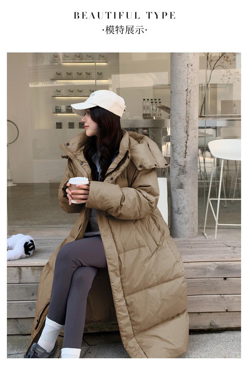 Invierno 2025 Nueva Moda Abrigo Holgado con Capucha Acolchado de Algodón para Mujer Transfronterizo Extra Largo Grueso Pan Cálido