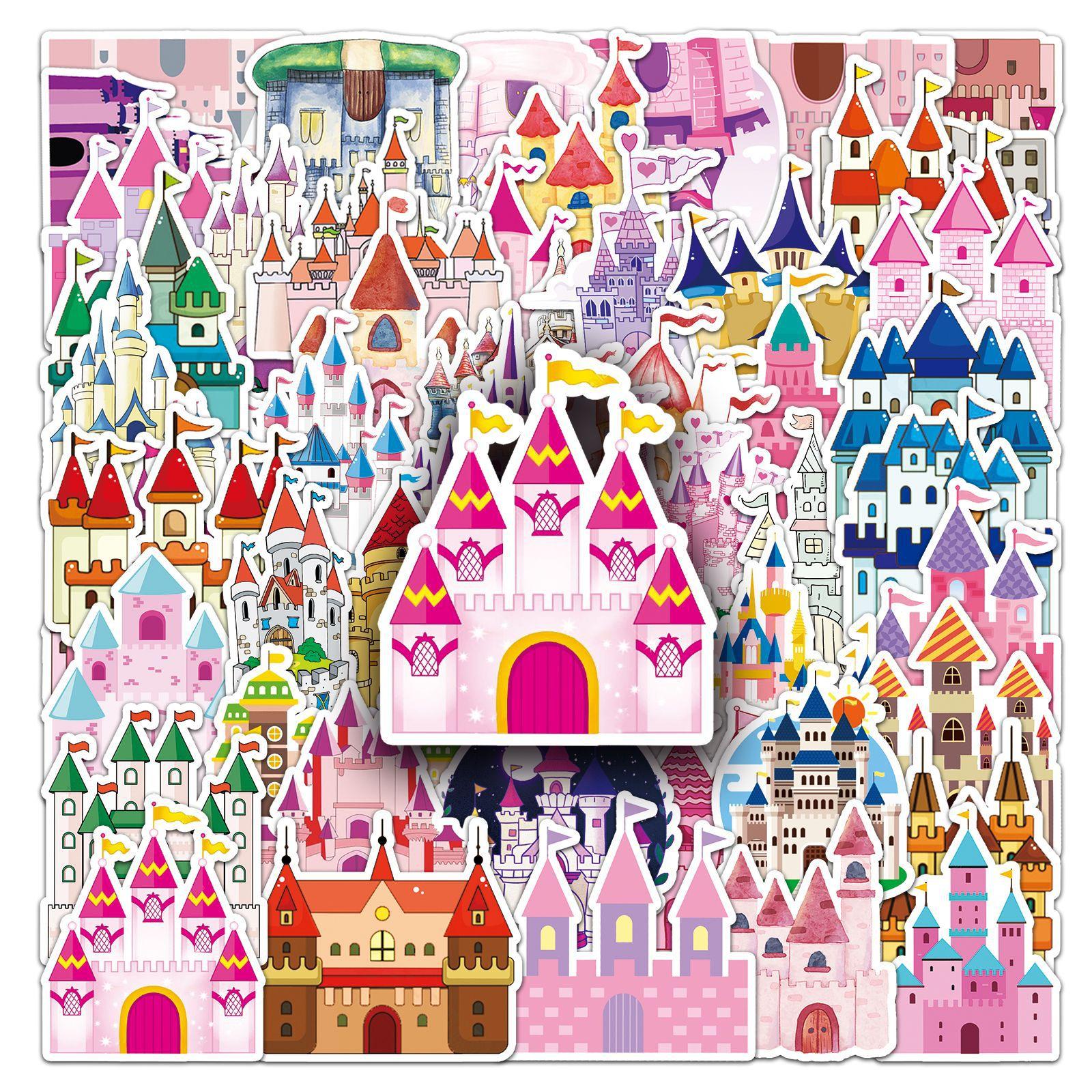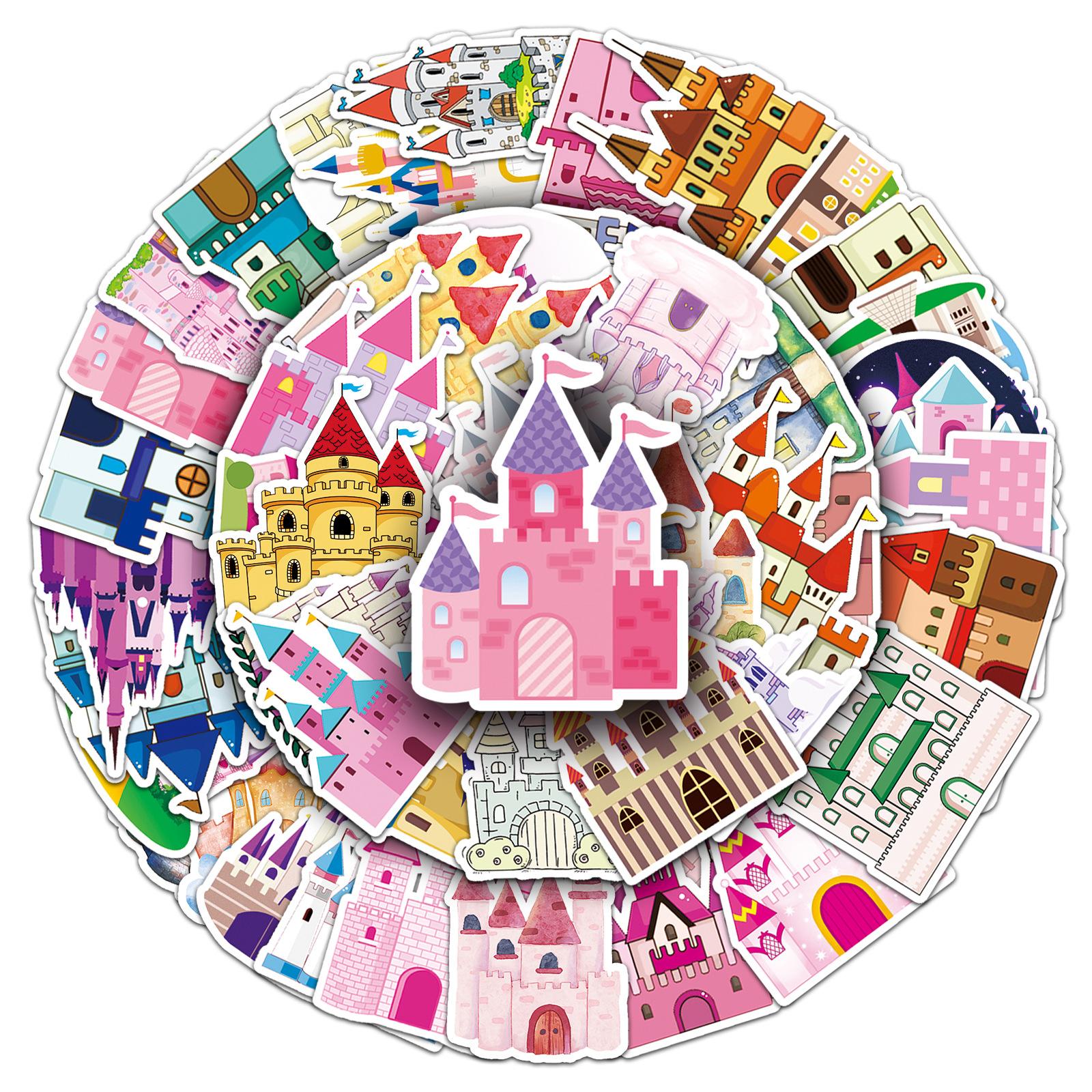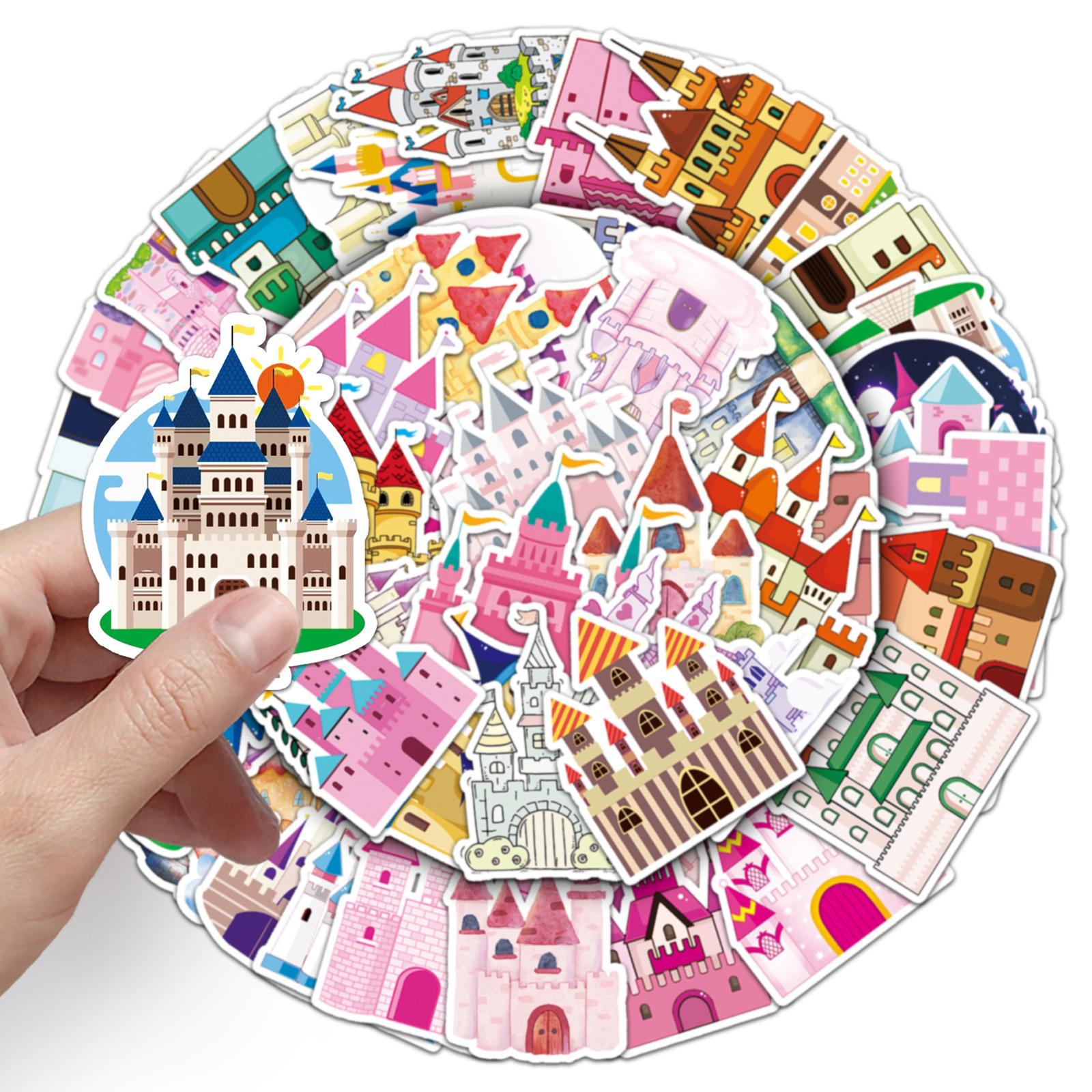 50 pegatinas de dibujos animados de castillo para equipaje, pegatinas de grafiti de tendencia creativa, decoración para portátil, coche y comercio exterior.