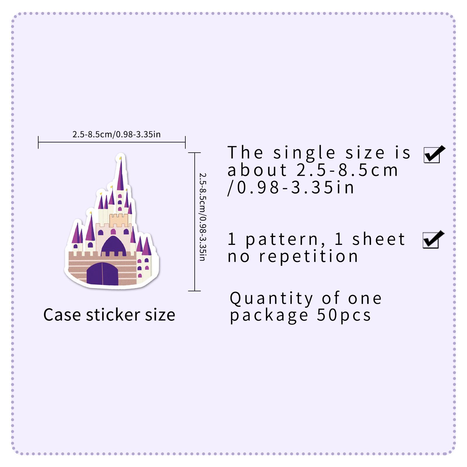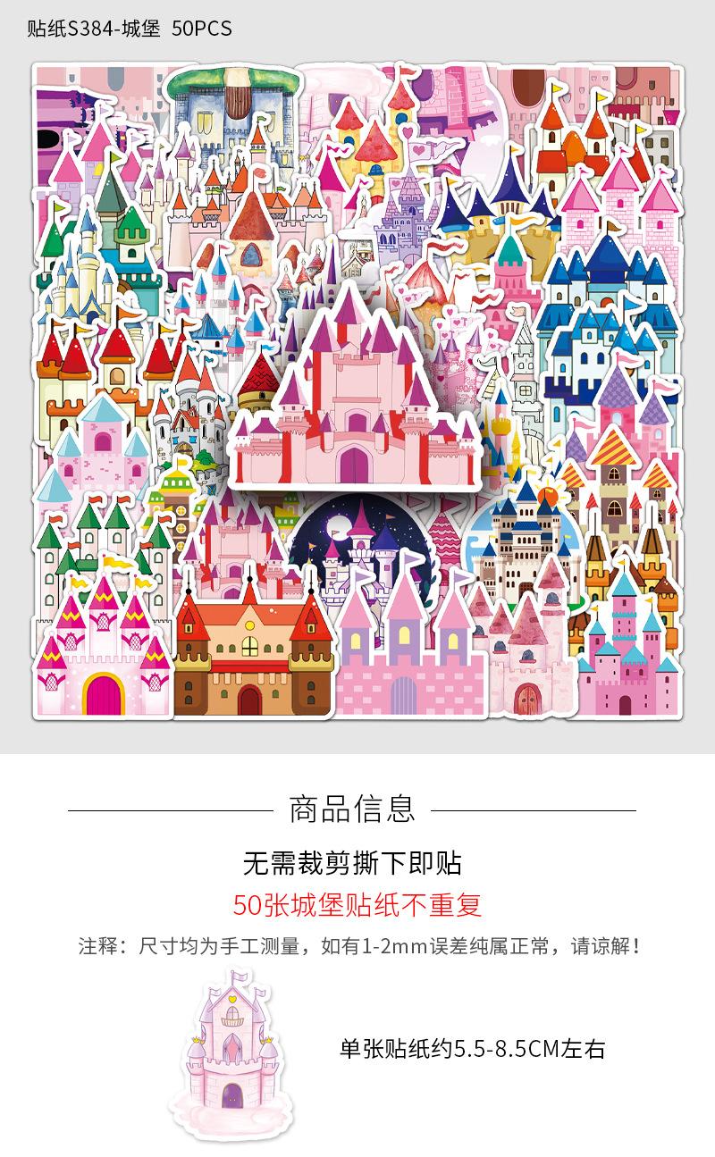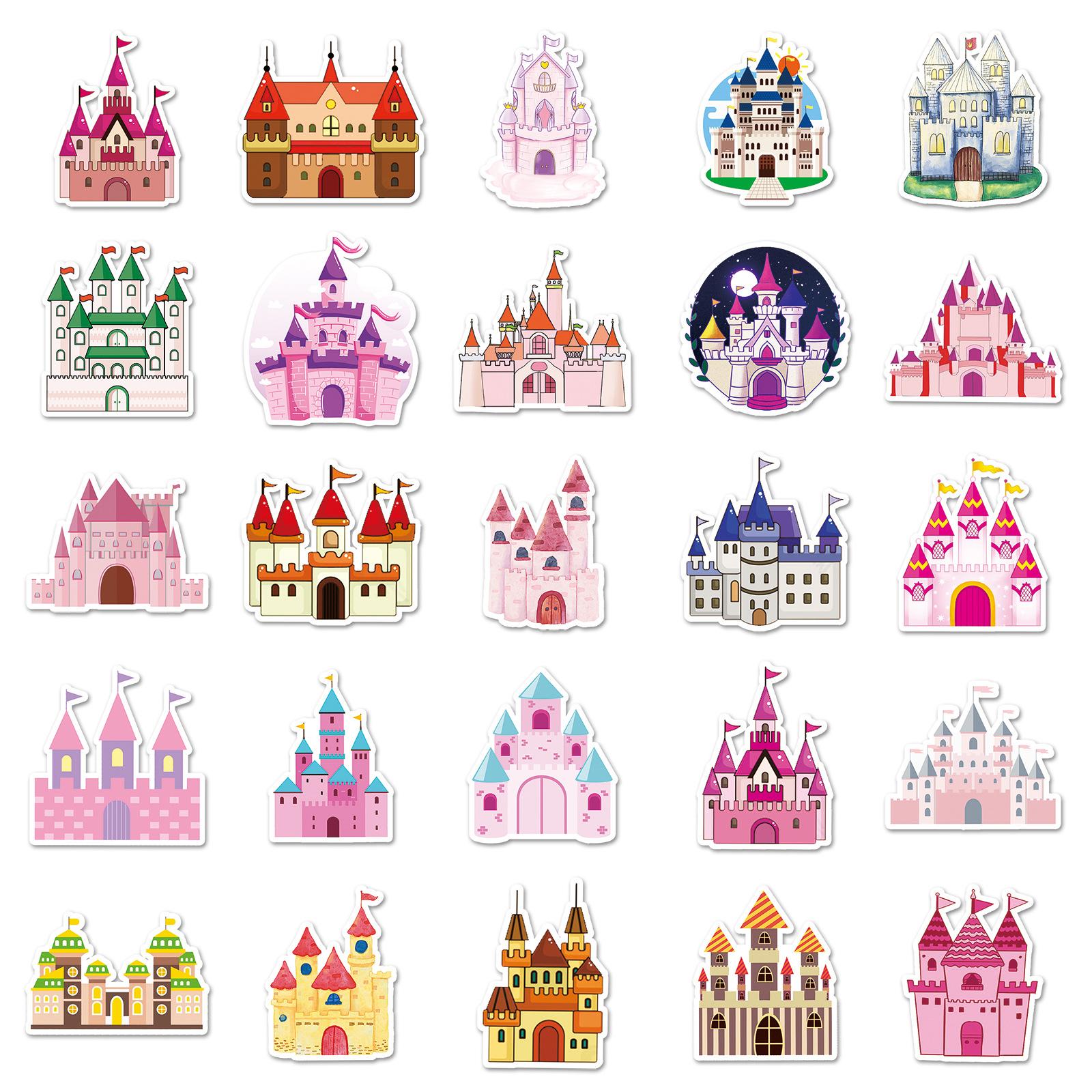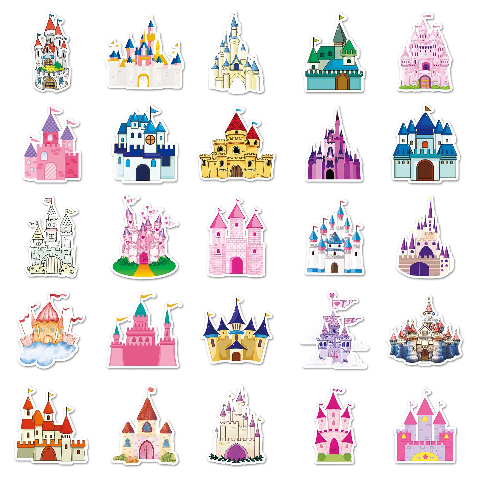 50 pegatinas de dibujos animados de castillo para equipaje, pegatinas de grafiti de tendencia creativa, decoración para portátil, coche y comercio exterior.