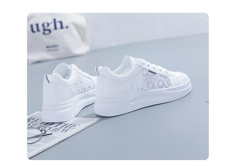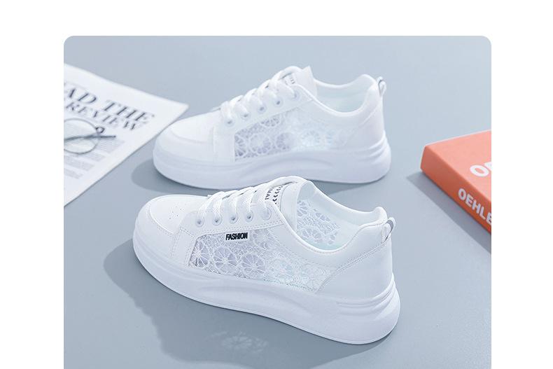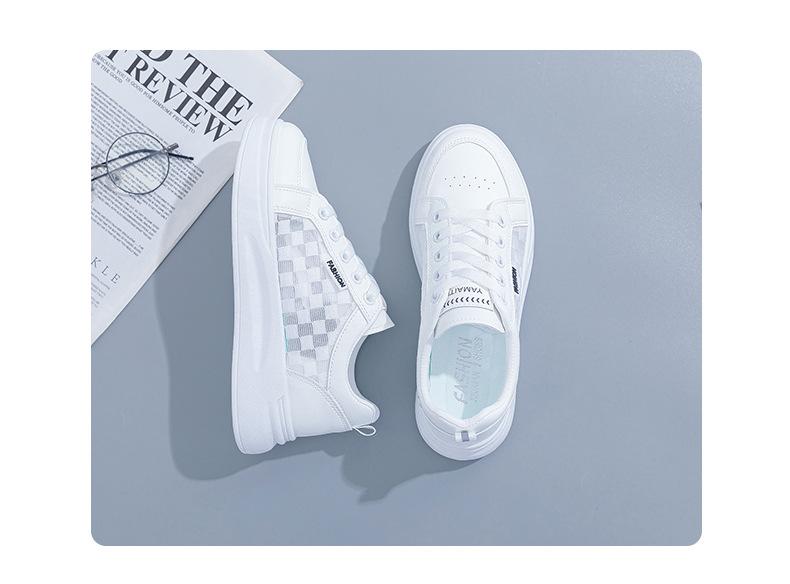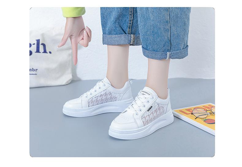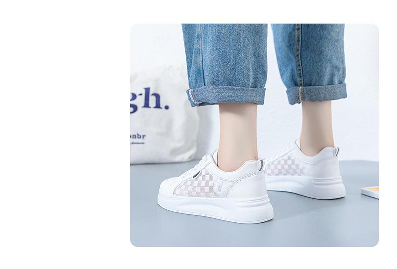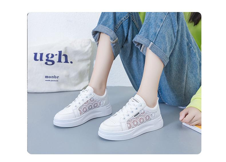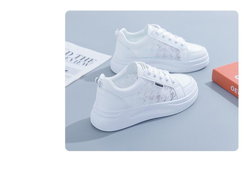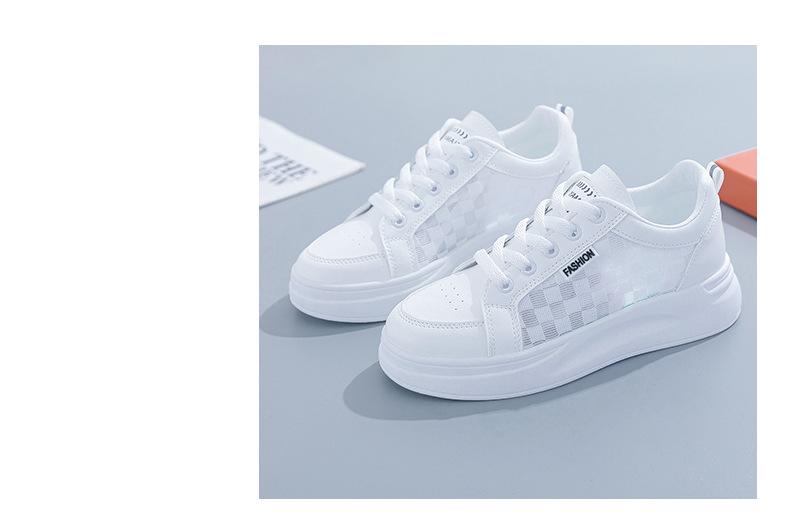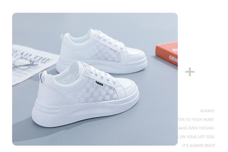 Zapatos blancos para mujer, primavera y verano, finos, nuevo estilo 2025, zapatos de malla transpirables para mujer, zapatillas deportivas informales con plataforma que combinan con todo.