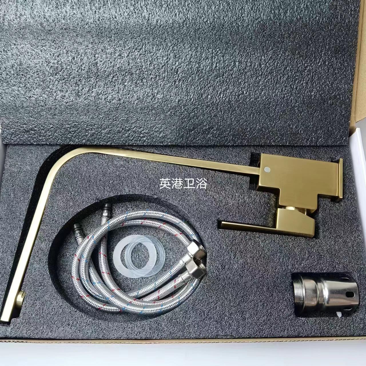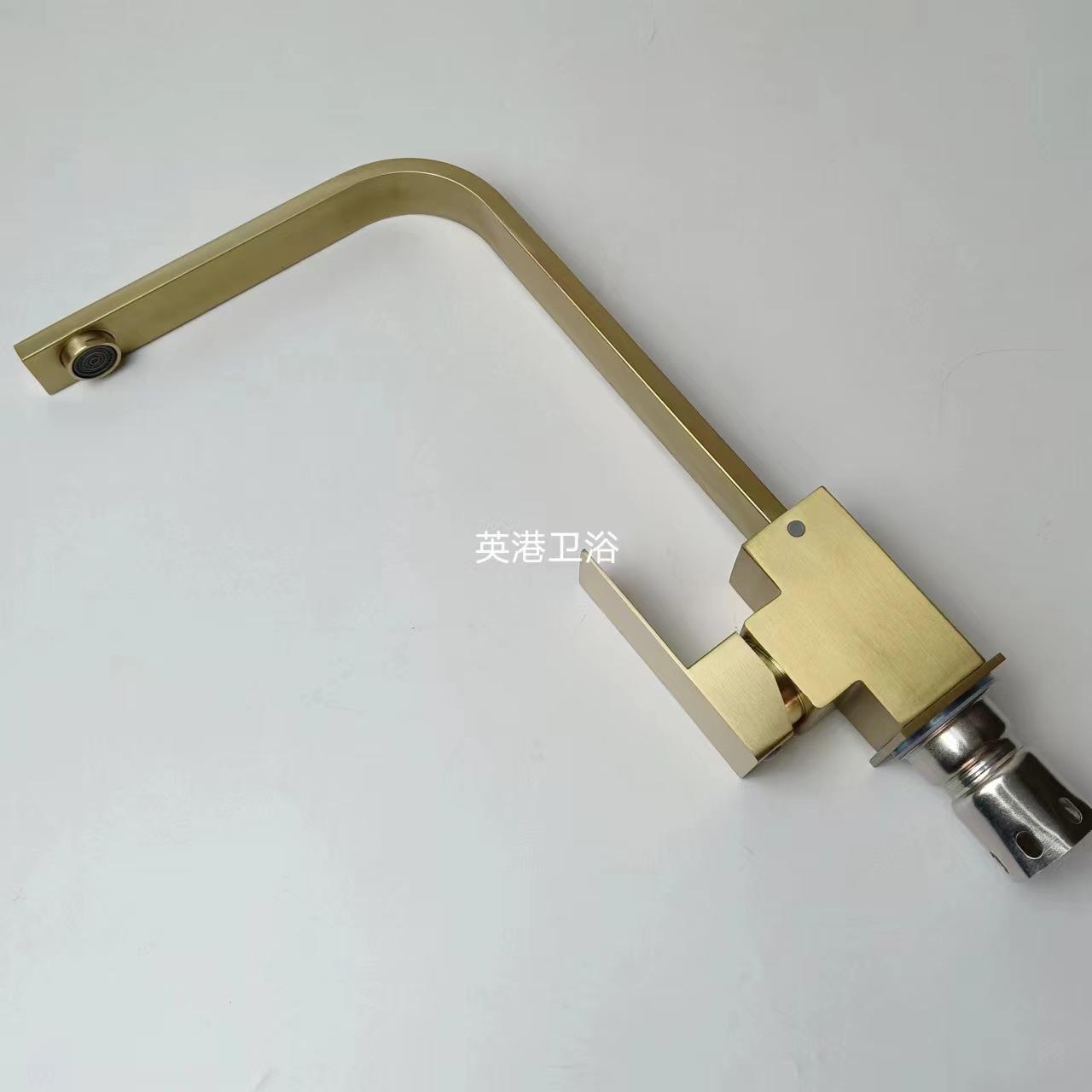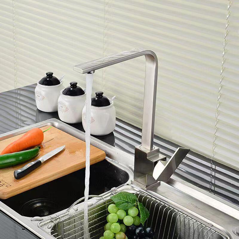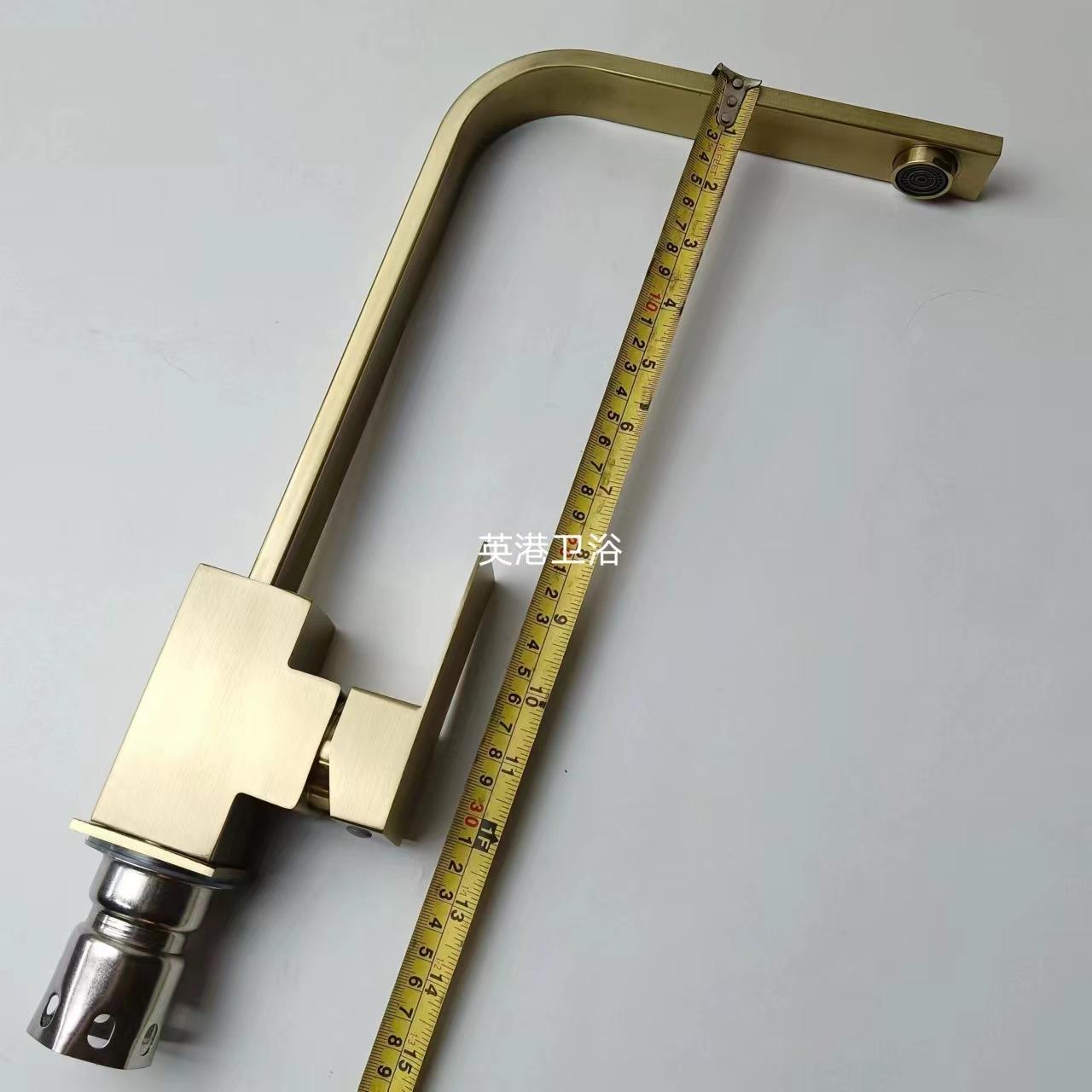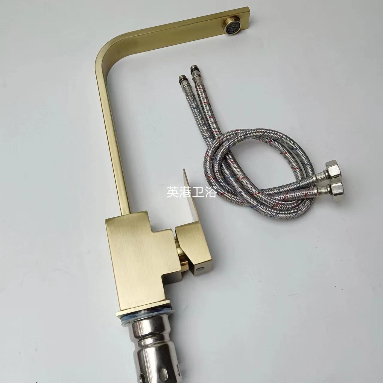 Grifo de cocina de tubo plano cuadrado transfronterizo con dibujo de alambre de agua caliente y fría, grifo de cocina giratorio de siete caracteres con lavabo para verduras