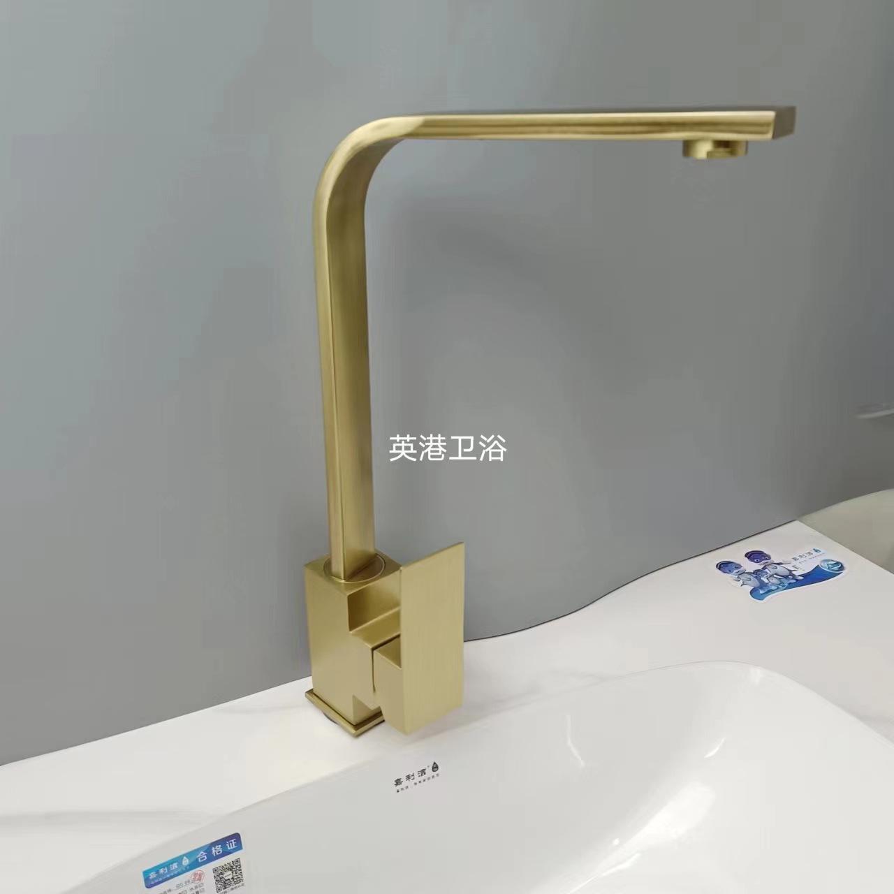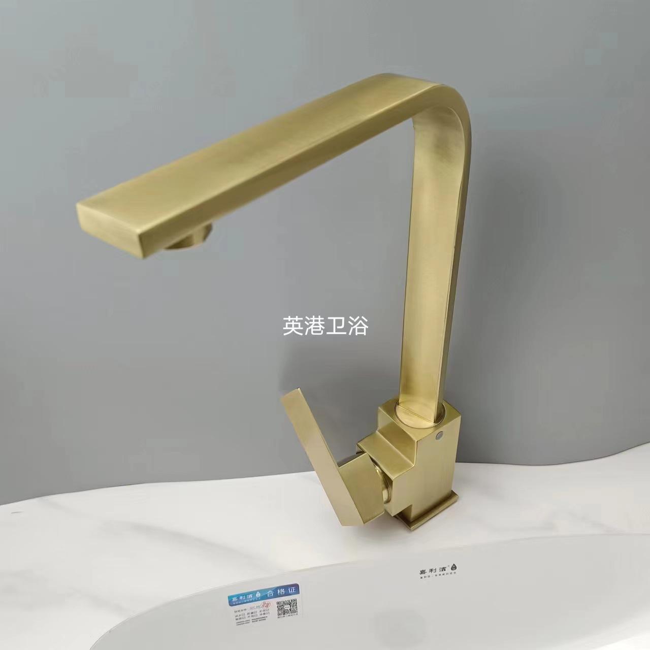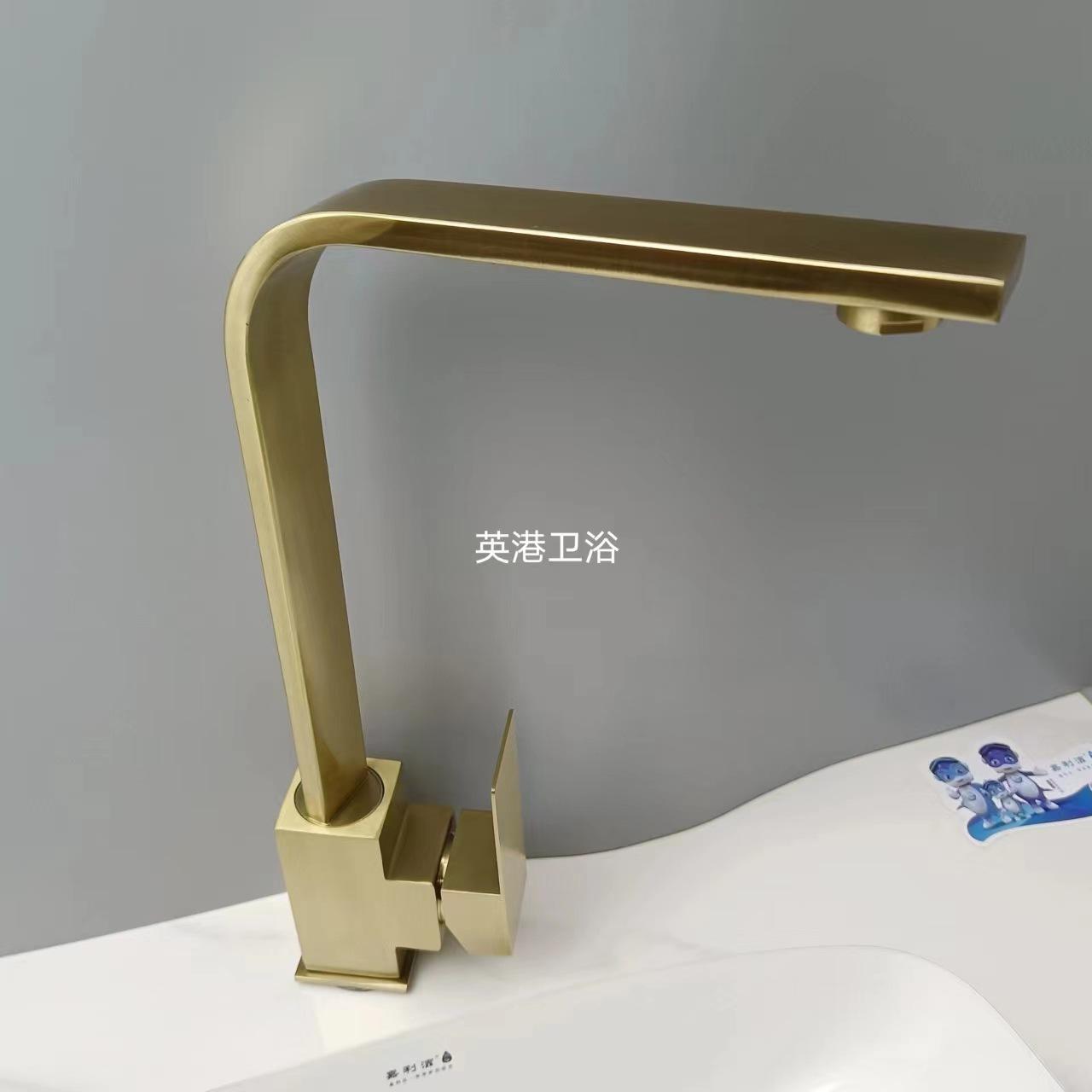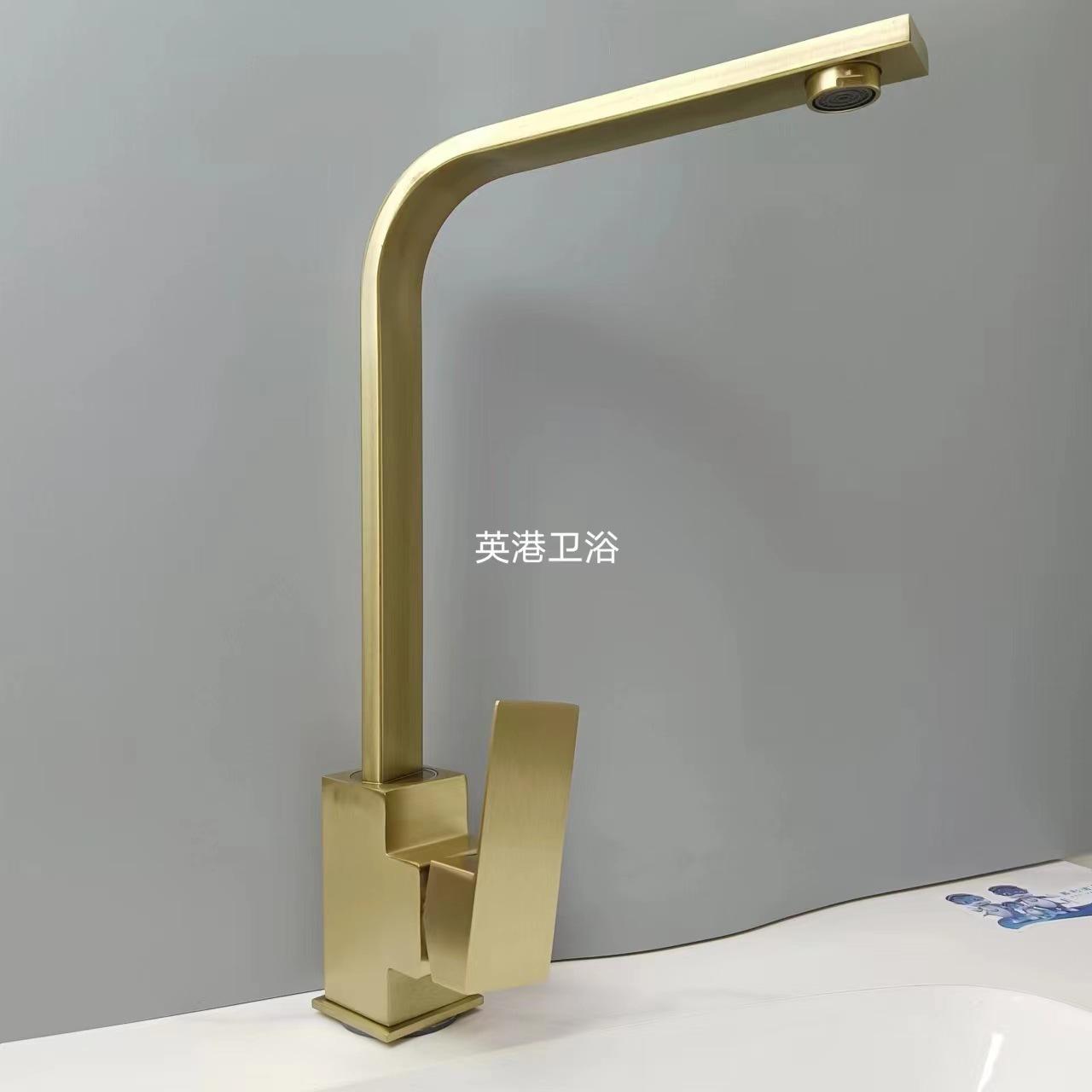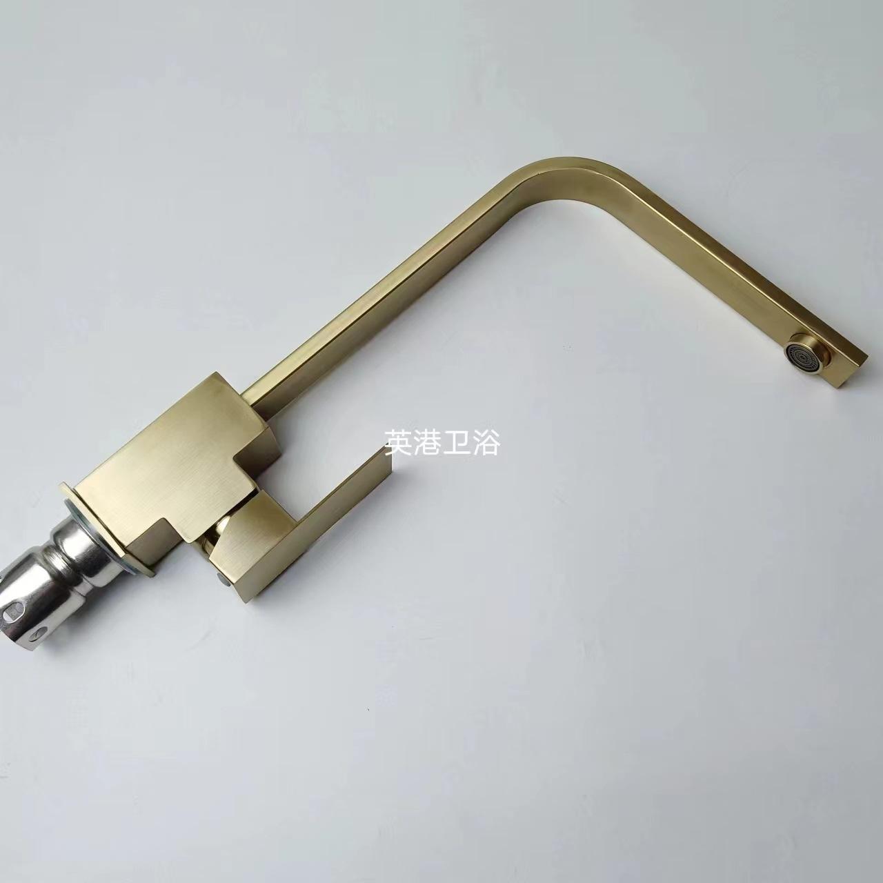 Grifo de cocina de tubo plano cuadrado transfronterizo con dibujo de alambre de agua caliente y fría, grifo de cocina giratorio de siete caracteres con lavabo para verduras