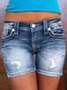 Primavera y Verano Amazon Transfronterizo Europeo y Americano Rotos Laterales Ojal Vendaje Elástico Pantalones Cortos Calientes de Mezclilla para Mujer