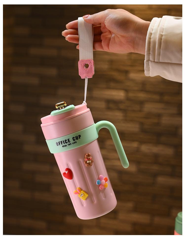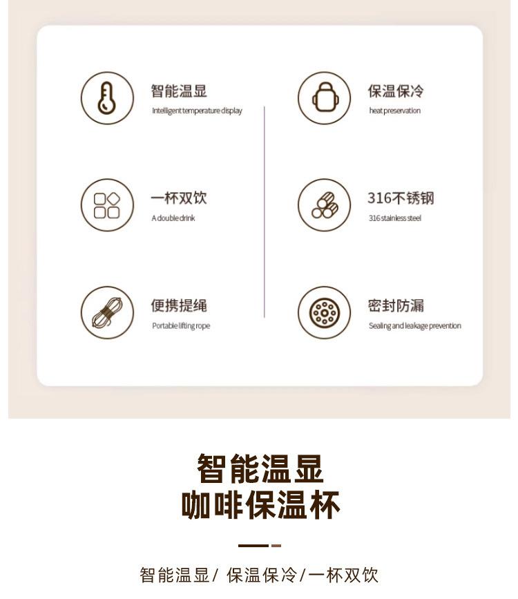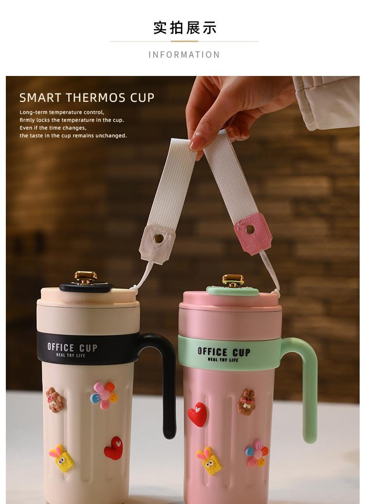 Venta al por mayor, termo de acero inoxidable personalizado de alto valor para oficina, con cuerda de transporte, taza de café inteligente portátil para mujeres