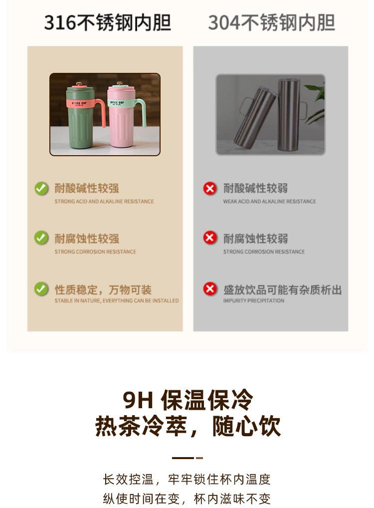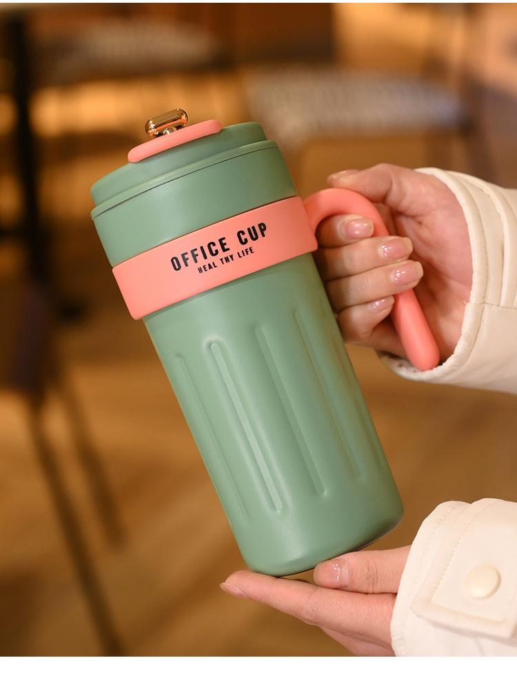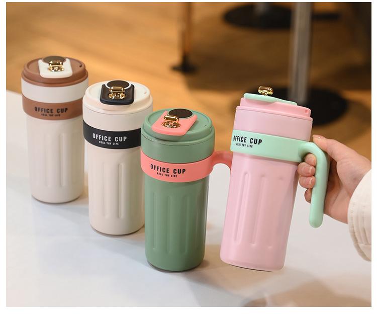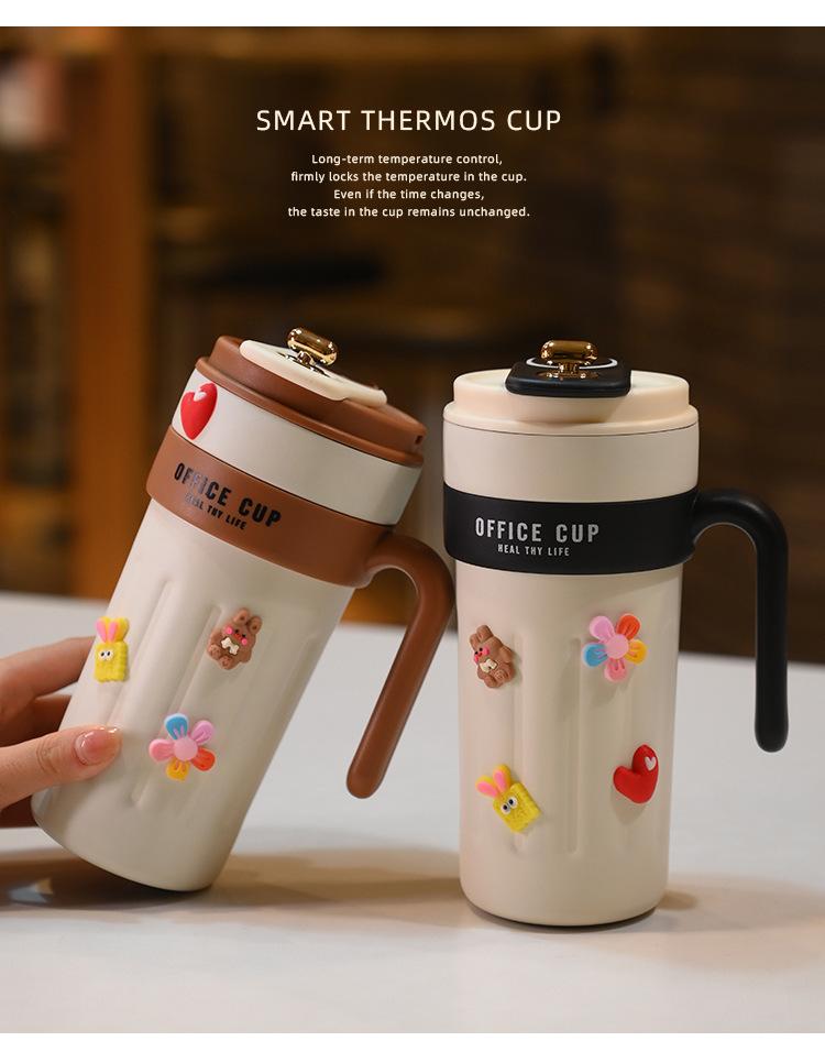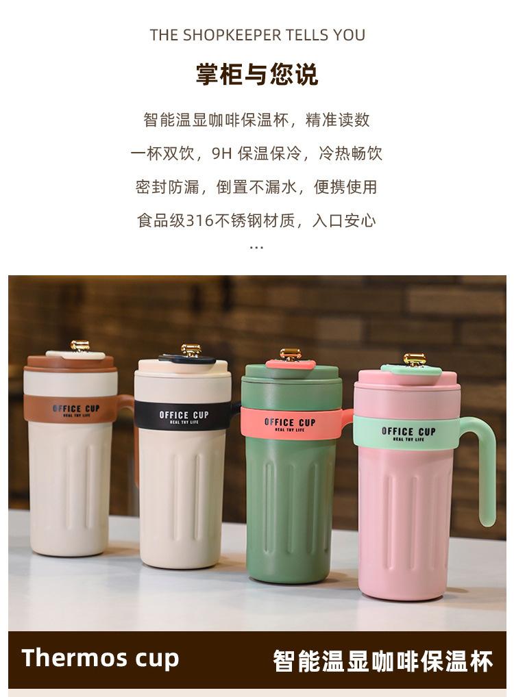 Taza de café personalizada de alto valor, de acero inoxidable 304, con pantalla cálida, asa de gran capacidad, taza de oficina, taza térmica engrosada