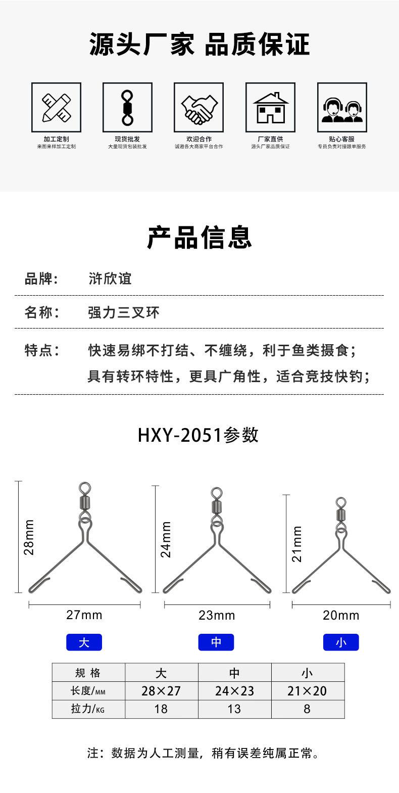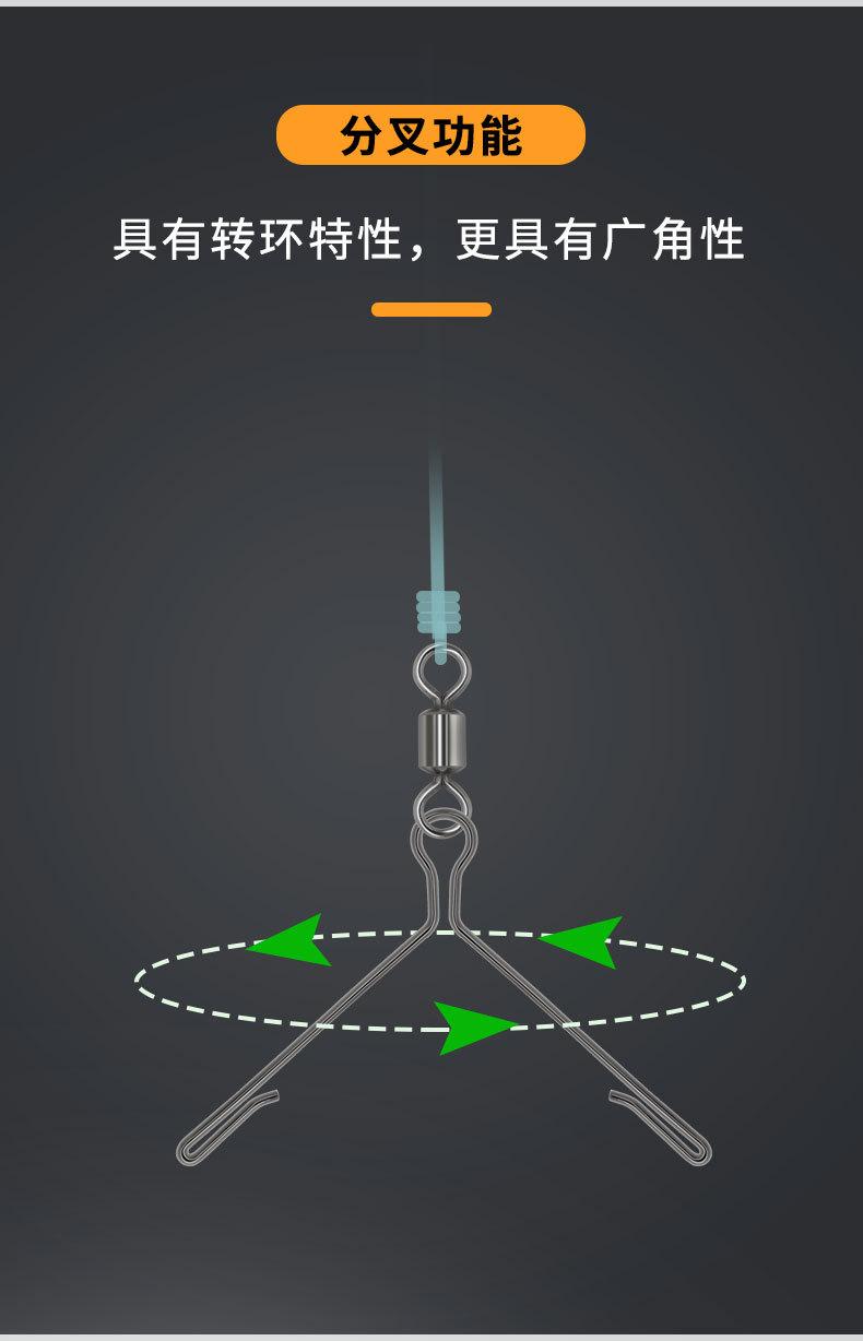Suministros de Pesca Equipo de Pesca Accesorios Pequeños Fabricante Venta al por Mayor Giratorio de Tres Puntas Potente Conector de Anillo Bifurcado Divisor de Gancho