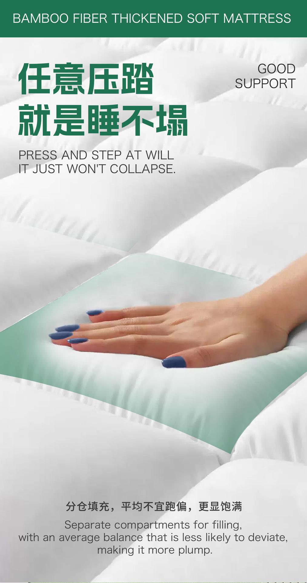 Colchón Especial, Colchón Suave, Colchón Grueso de Fibra de Bambú, Protector de Colchón Alto, Protector de Colchón de Algodón, Colchón