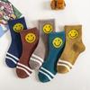 Calcetines para niños, primavera y otoño, con cara sonriente, calcetines hasta la pantorrilla de algodón peinado, calcetines para niños y niñas, bonitos calcetines de dibujos animados de estilo universitario para estudiantes, venta al por mayor