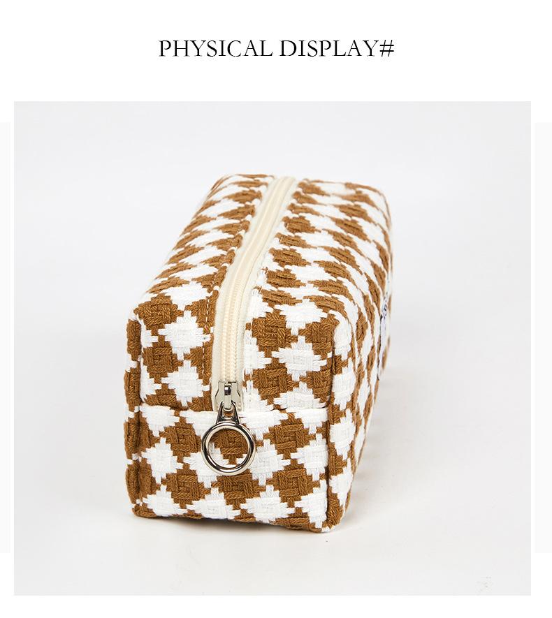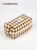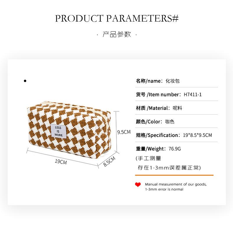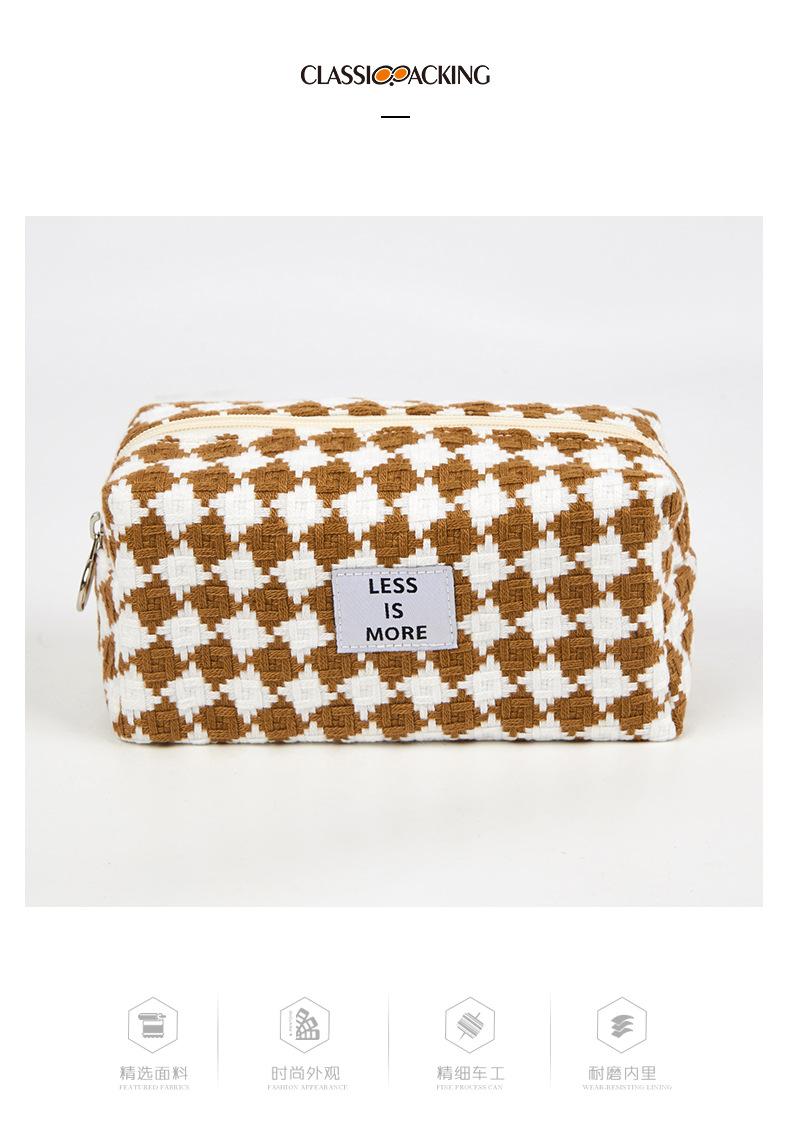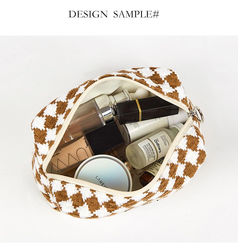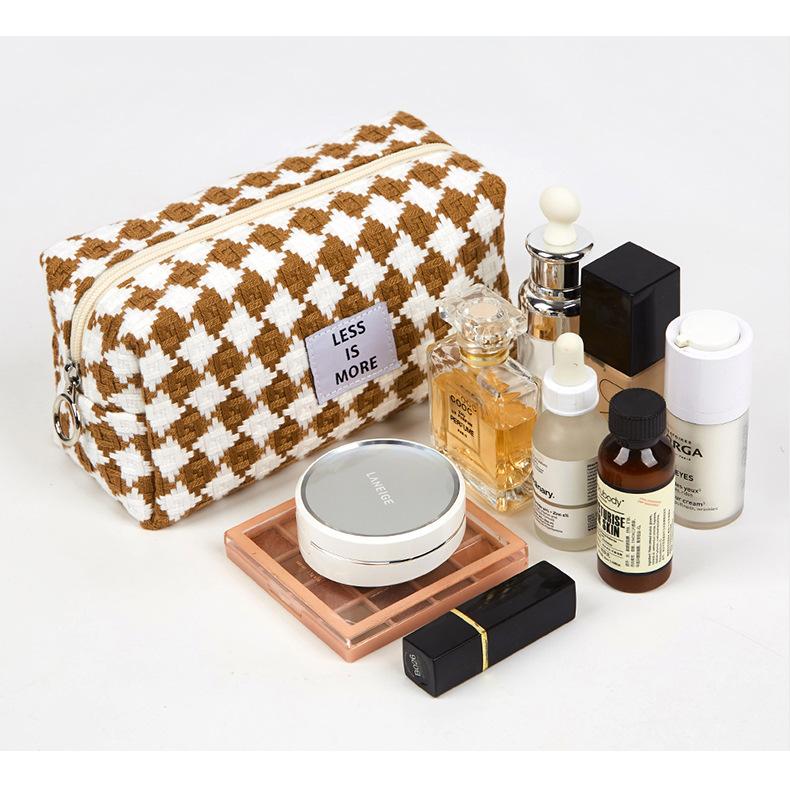 Cosméticos de Lana Organizador de Bolsa de Cosméticos Bolsa de Aseo de Viaje Gran Capacidad Bolsa de Cosméticos Cuadrada a Cuadros Personalización de Fábrica