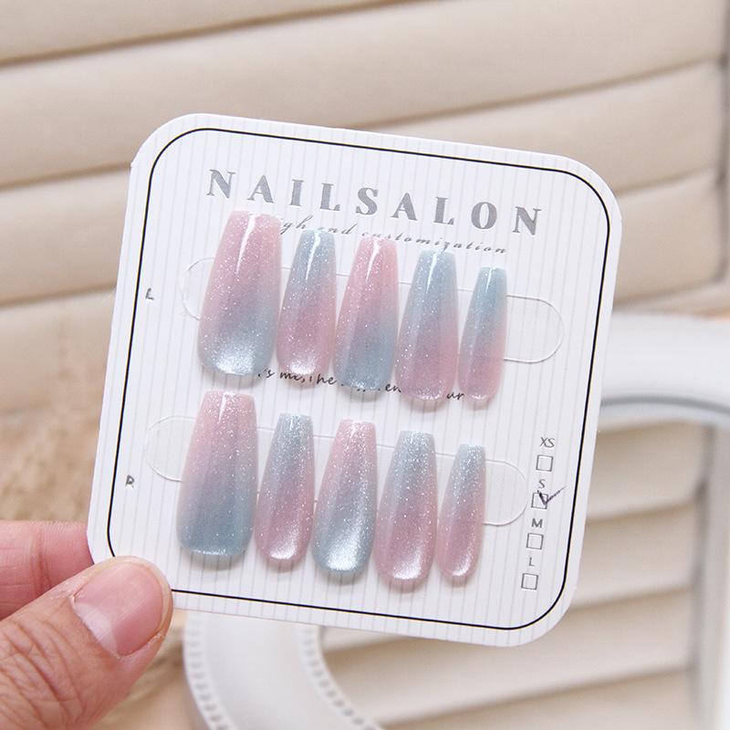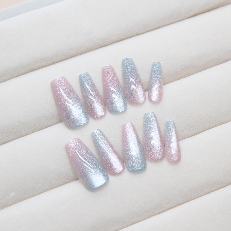 Uñas Desgastables con Gradiente Ojo de Gato Parche Removible para Uñas Parche de Arte para Uñas Código Mediano t Uñas de Ballet 10 Piezas