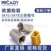 Tuerca personalizada de hardware Dasheng, tuerca de cobre con rosca interna, tuerca de inserción de inyección moleteada hexagonal, orificio pasante, serie métrica