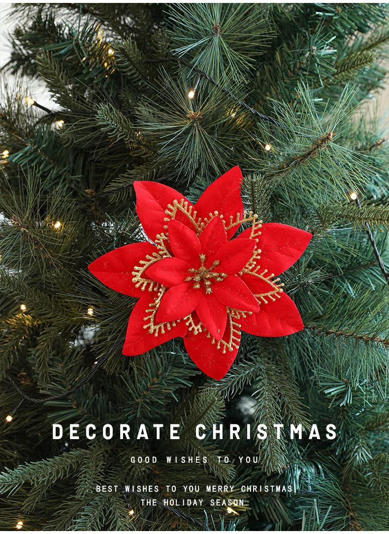 Nueva decoración de árbol de Navidad, simulación de flores navideñas, bricolaje, tres capas, tridimensional, festival, diseño de ambiente navideño, simulación de flores