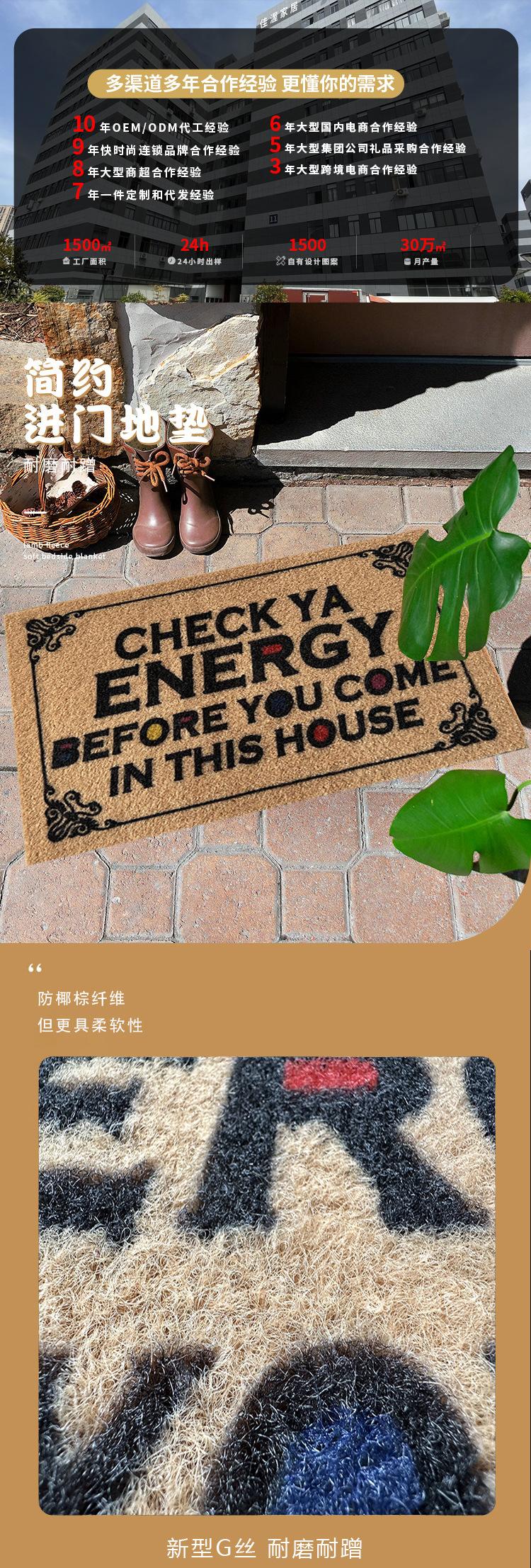 Felpudo de entrada con imitación de palma de coco, antideslizante, para exteriores, resistente a las manchas, sin lavado.