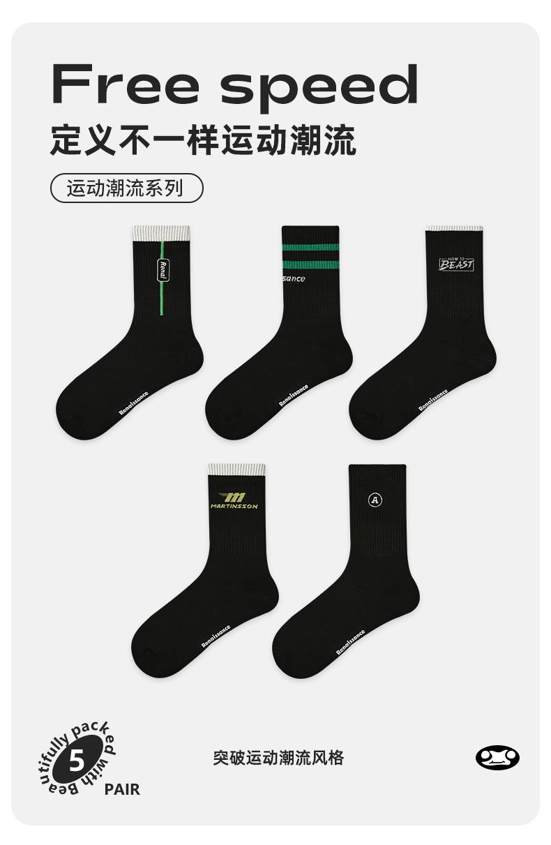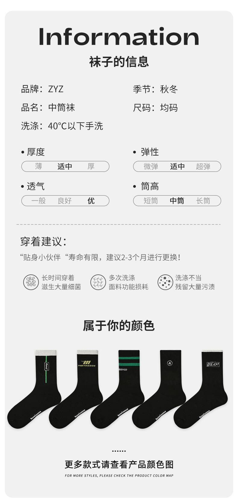 Calcetines deportivos originales ZYZ hasta media pantorrilla negros estampados calcetines modernos para hombre caja de regalo de 5 pares calcetines para hombre de algodón peinado para pies sin mal olor