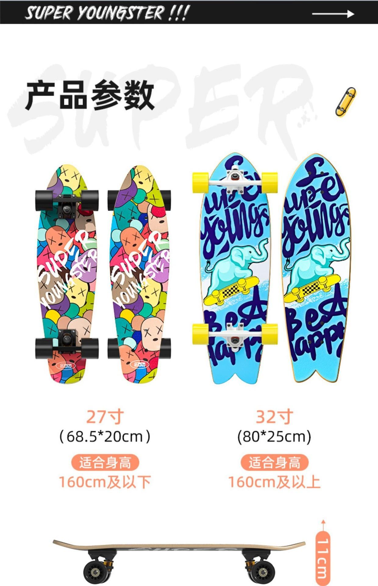 [envío gratis] tabla de pescado principiantes adulto niños niñas cepillo calle 27 pulgadas 32 pulgadas patineta arce ruso