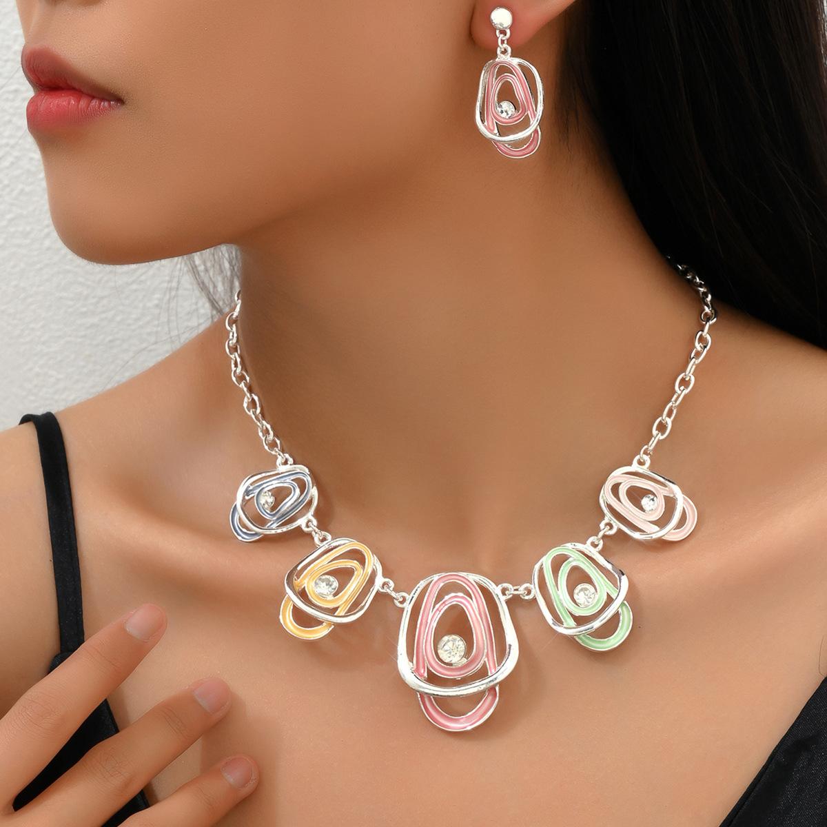 Collar y pendientes de moda transfronterizos europeos y americanos, collar largo de diamantes irregulares, pendientes retro personalizados para mujer