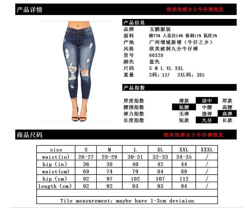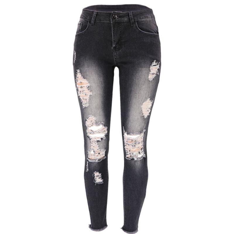 Pantalones vaqueros ajustados de moda para mujer con nueve agujeros de alta elasticidad y alta elasticidad de fábrica de Amazon de verano de 2022