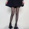 Medias de rejilla de jacquard con lazo y tatuaje, negras, para mujer, otoño e invierno, ajustadas y sexys, leggings JK.