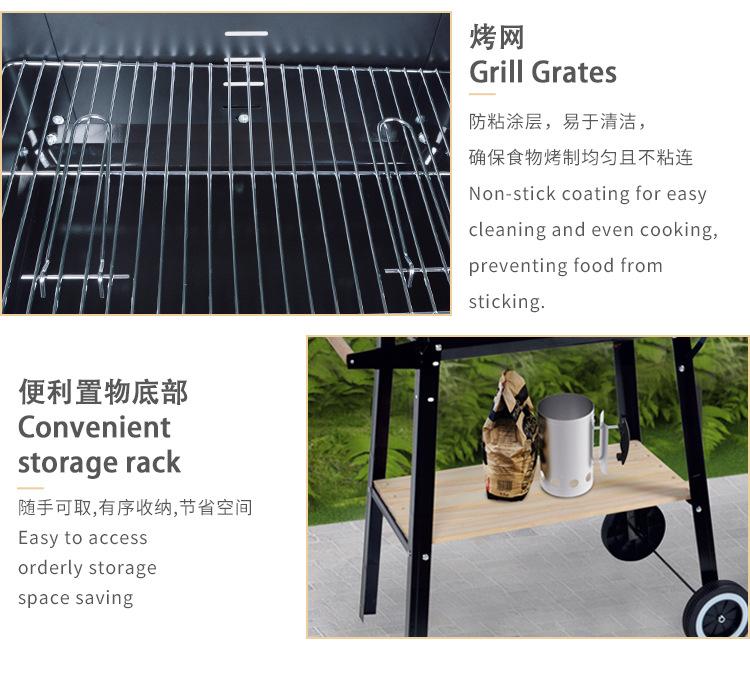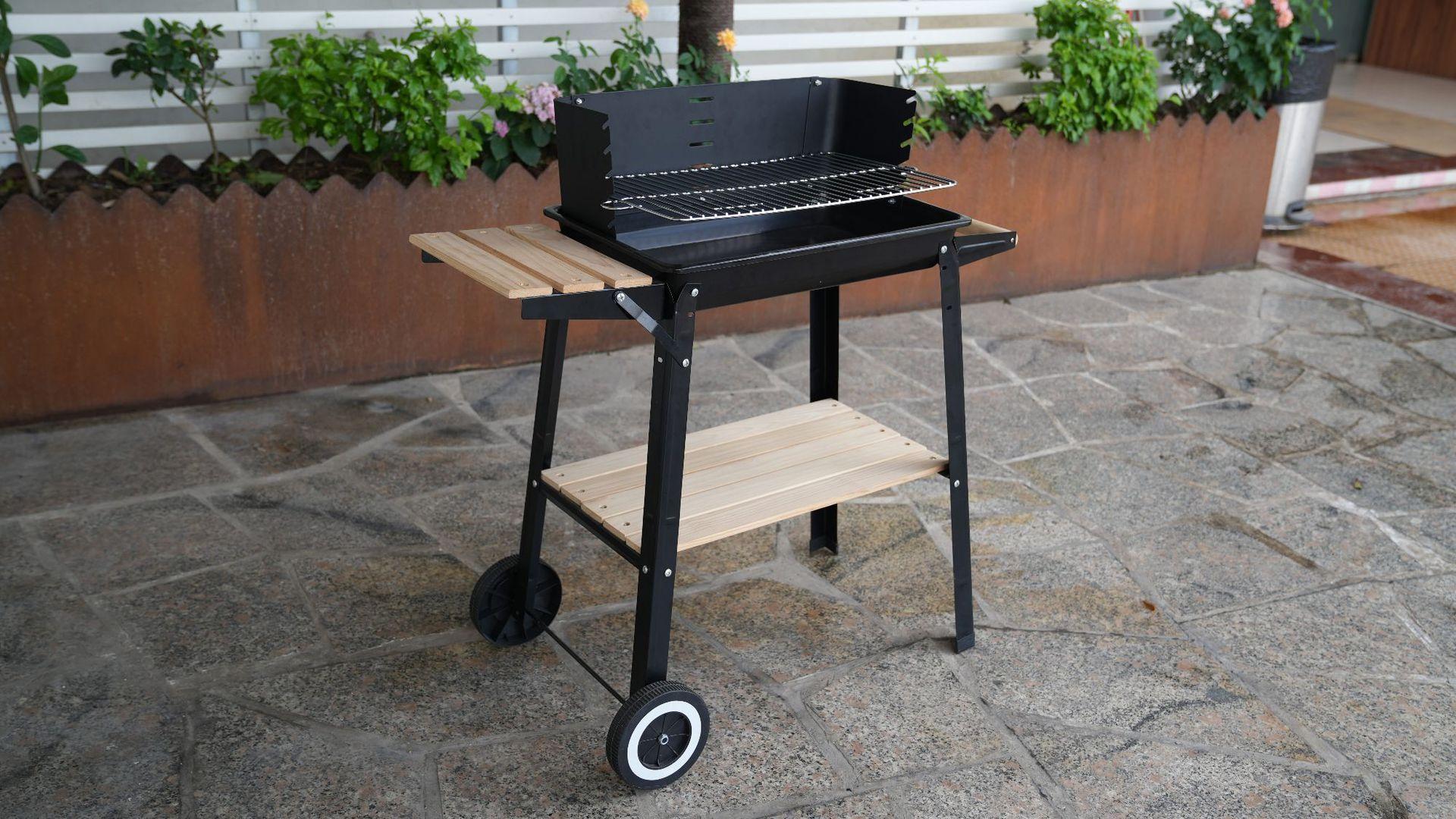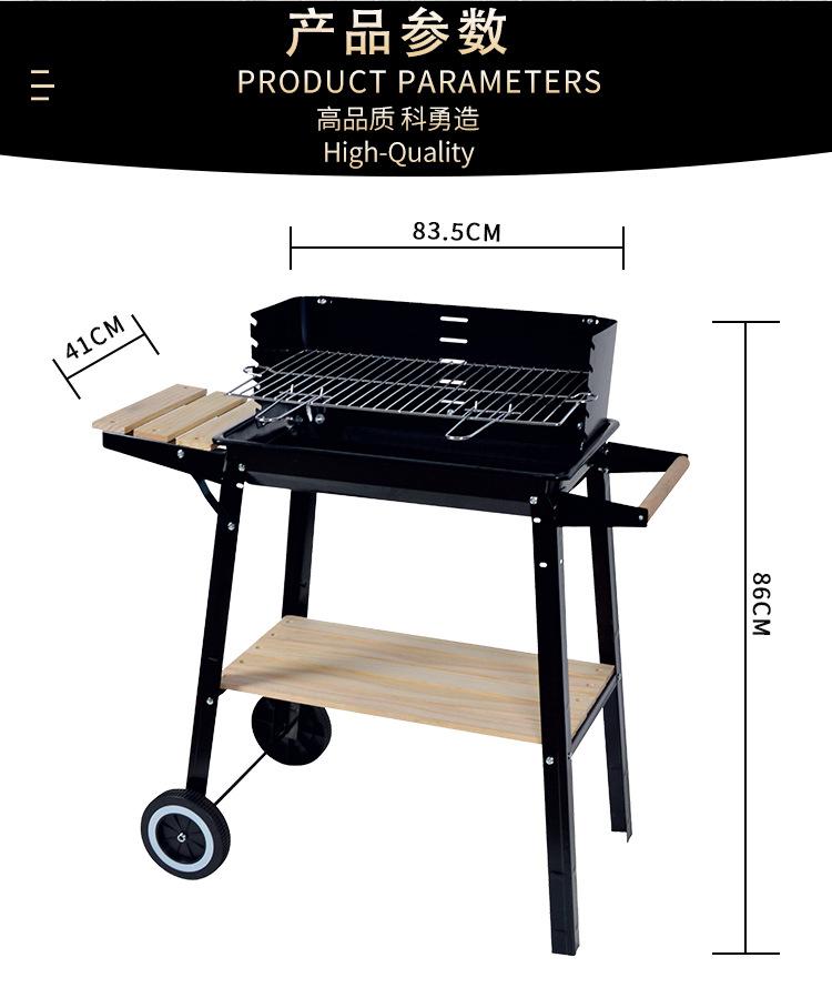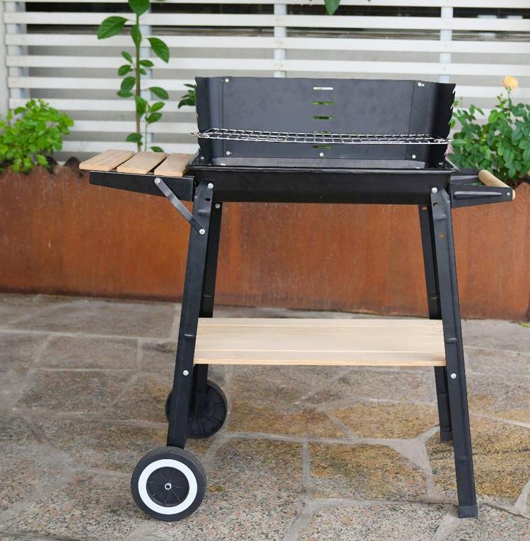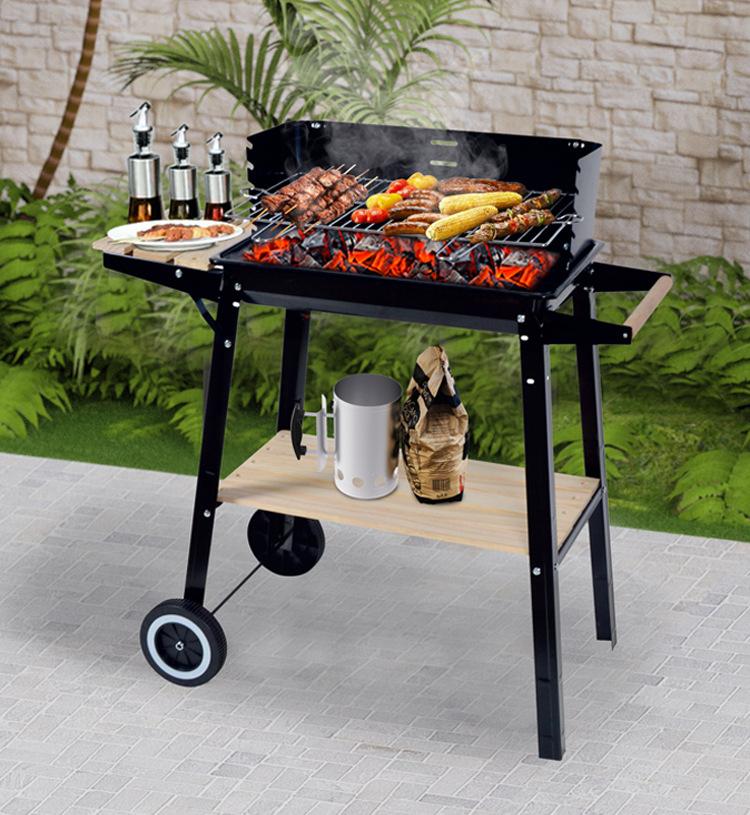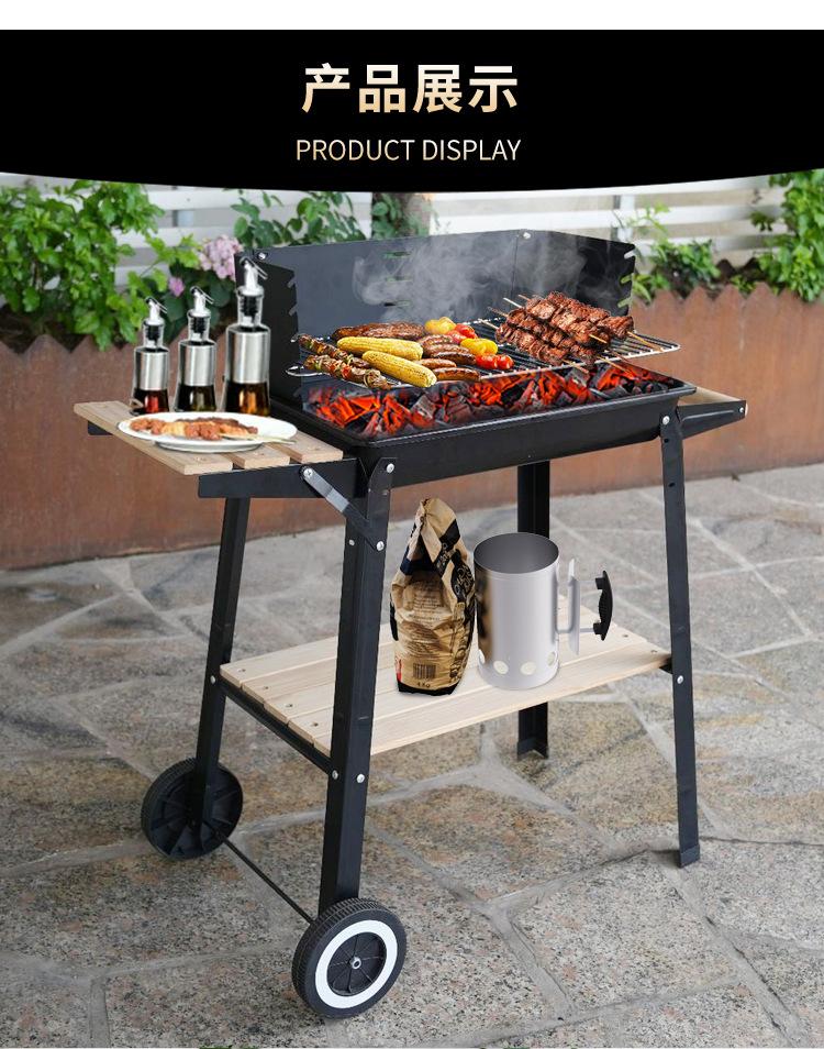 Parrilla portátil grande para exteriores, con carrito, cuadrada, de carbón, para patio, para camping, gruesa