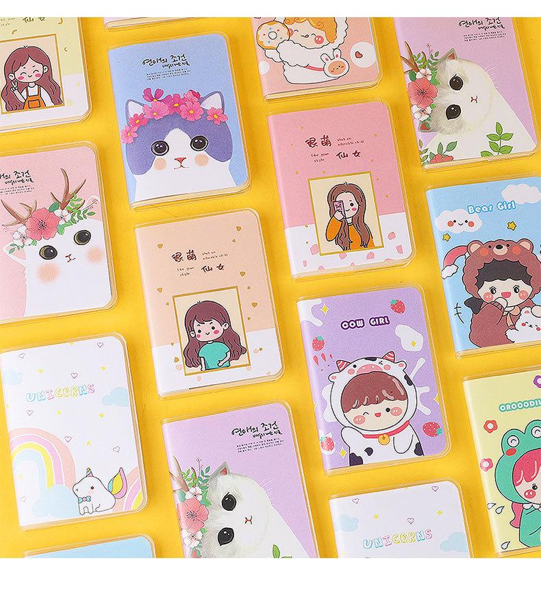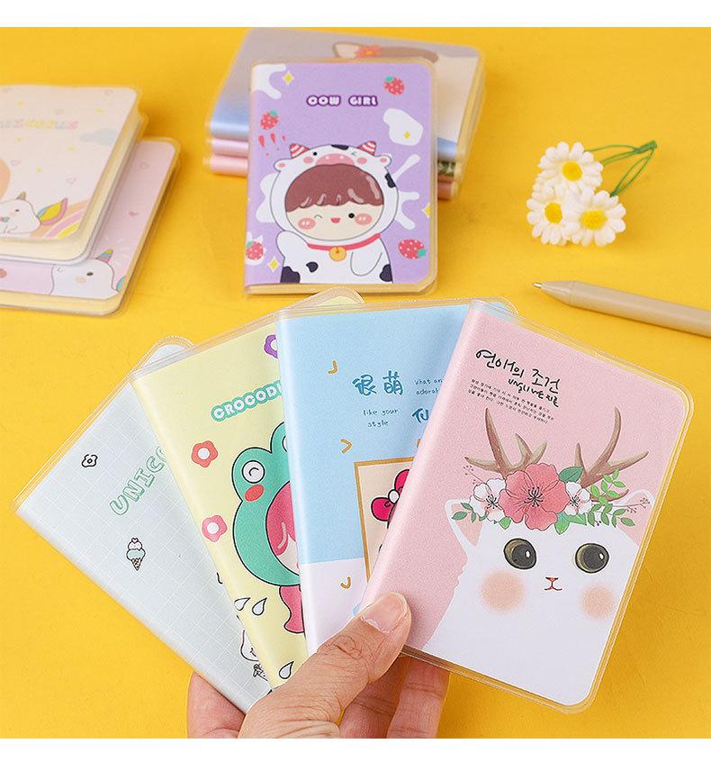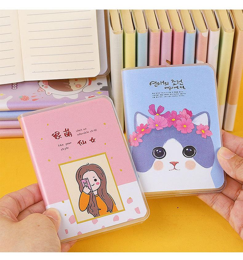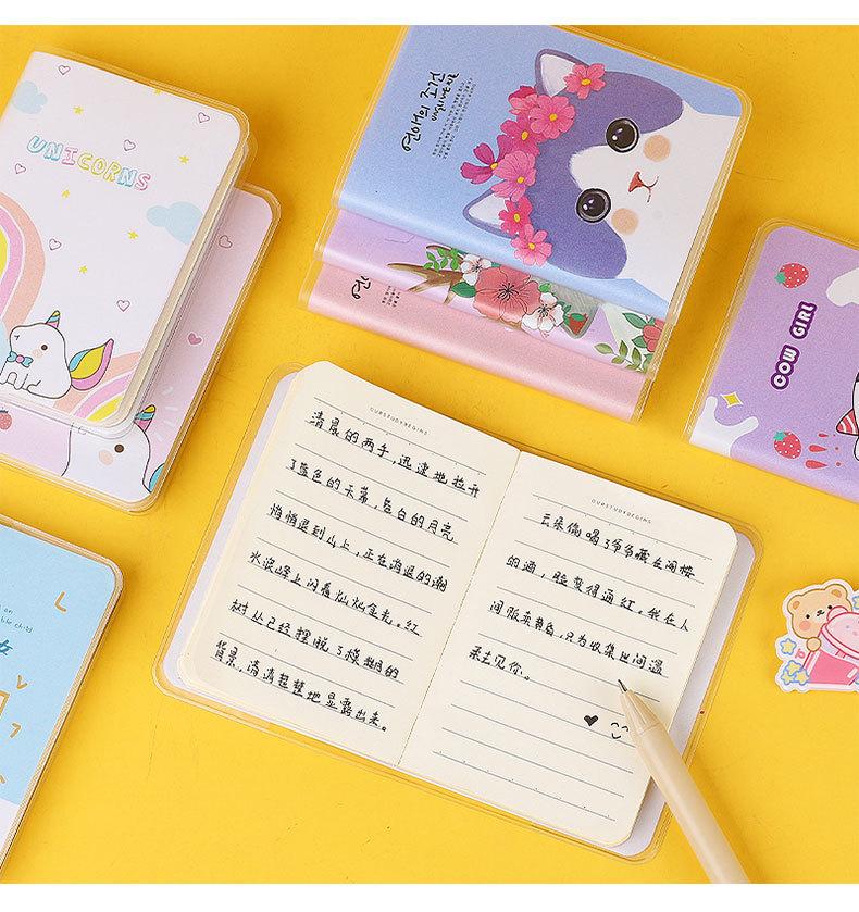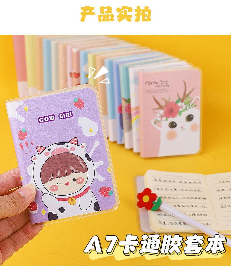 Cuaderno A7 con tapa de goma y dibujos animados, minidiario de bolsillo para estudiantes, bonito y portátil, con botones de torre, notas y manual