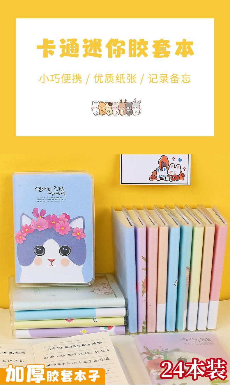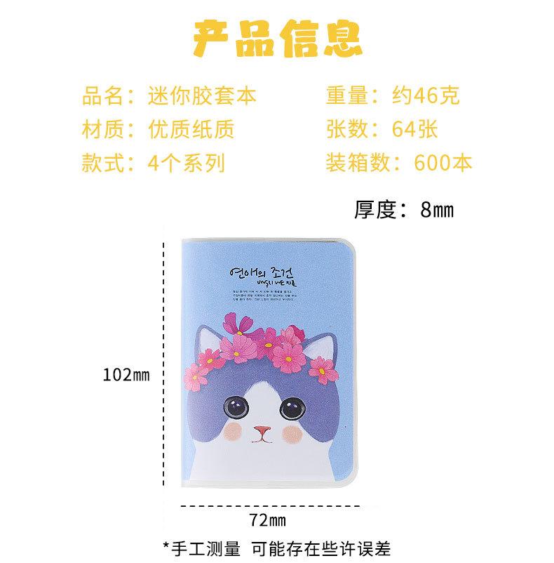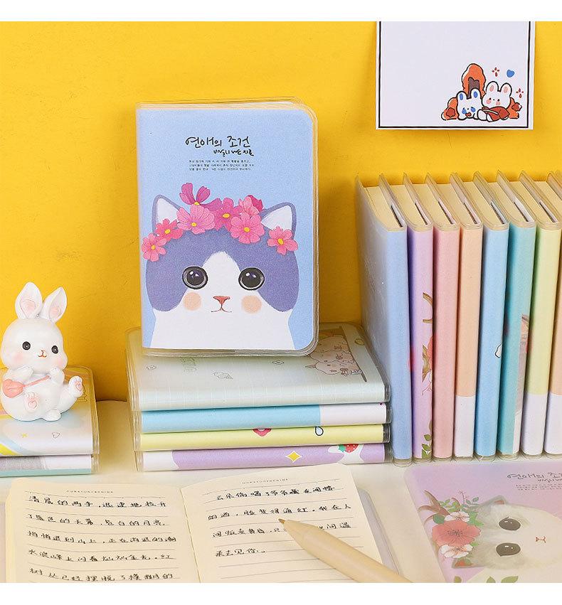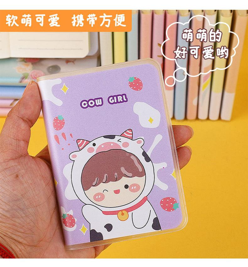 Cuaderno A7 con tapa de goma y dibujos animados, minidiario de bolsillo para estudiantes, bonito y portátil, con botones de torre, notas y manual