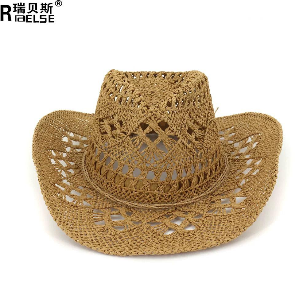Sombrero de paja tejido a mano para primavera y verano, nuevo, hueco, transpirable, para amantes de los hombres y mujeres, sombrero de vaquero occidental con protección solar.