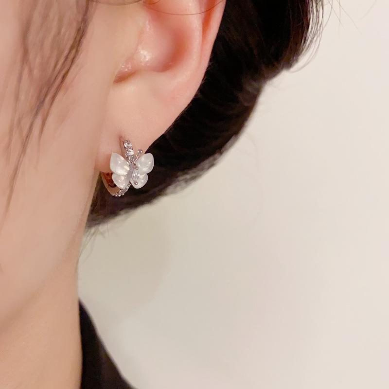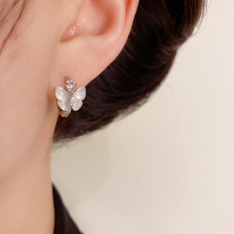 Cat's eye stone butterfly ear buckle (thick gold plating)