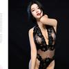 Lencería sexy de una pieza transparente de estilo europeo y americano, de malla de encaje ajustada negra, conjunto seductor y sexy 8816