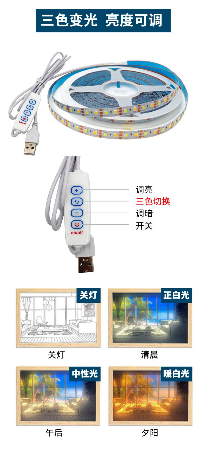 Tira de luces LED de 5V Tricolor Cambio de color Monocromo Pintura de sol Interruptor Pintura decorativa Atenuación bicolor Tira de luz suave Tira de luz suave