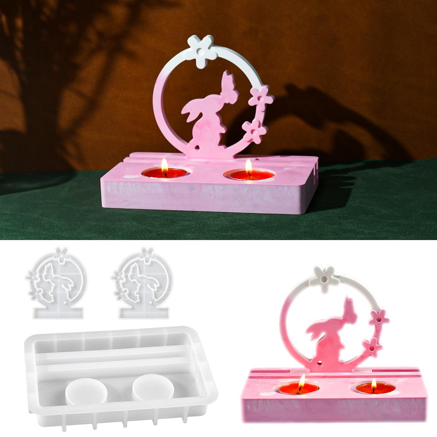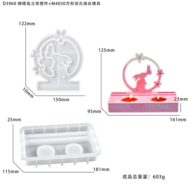D3960-Butterfly Rabbit Ornaments Mold D4030-Square Double Hole Candlestick Base Mold