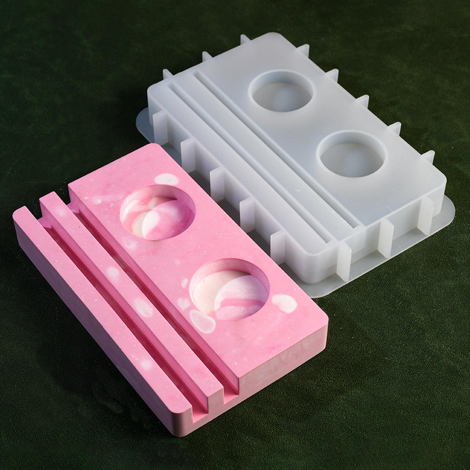 Molde de silicona para velas de aromaterapia con forma de gota de pegamento, cuadrado, de doble agujero, con base de adornos tridimensionales.