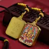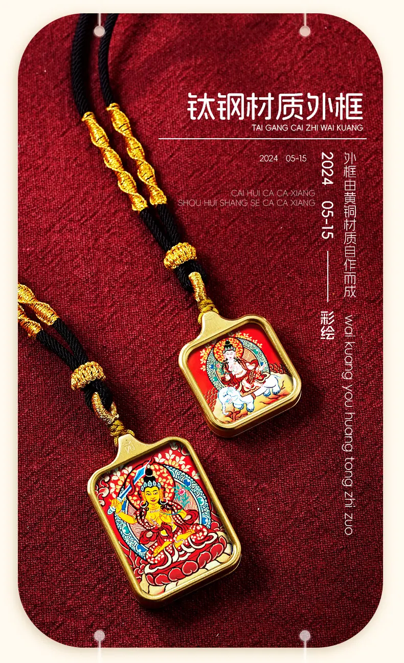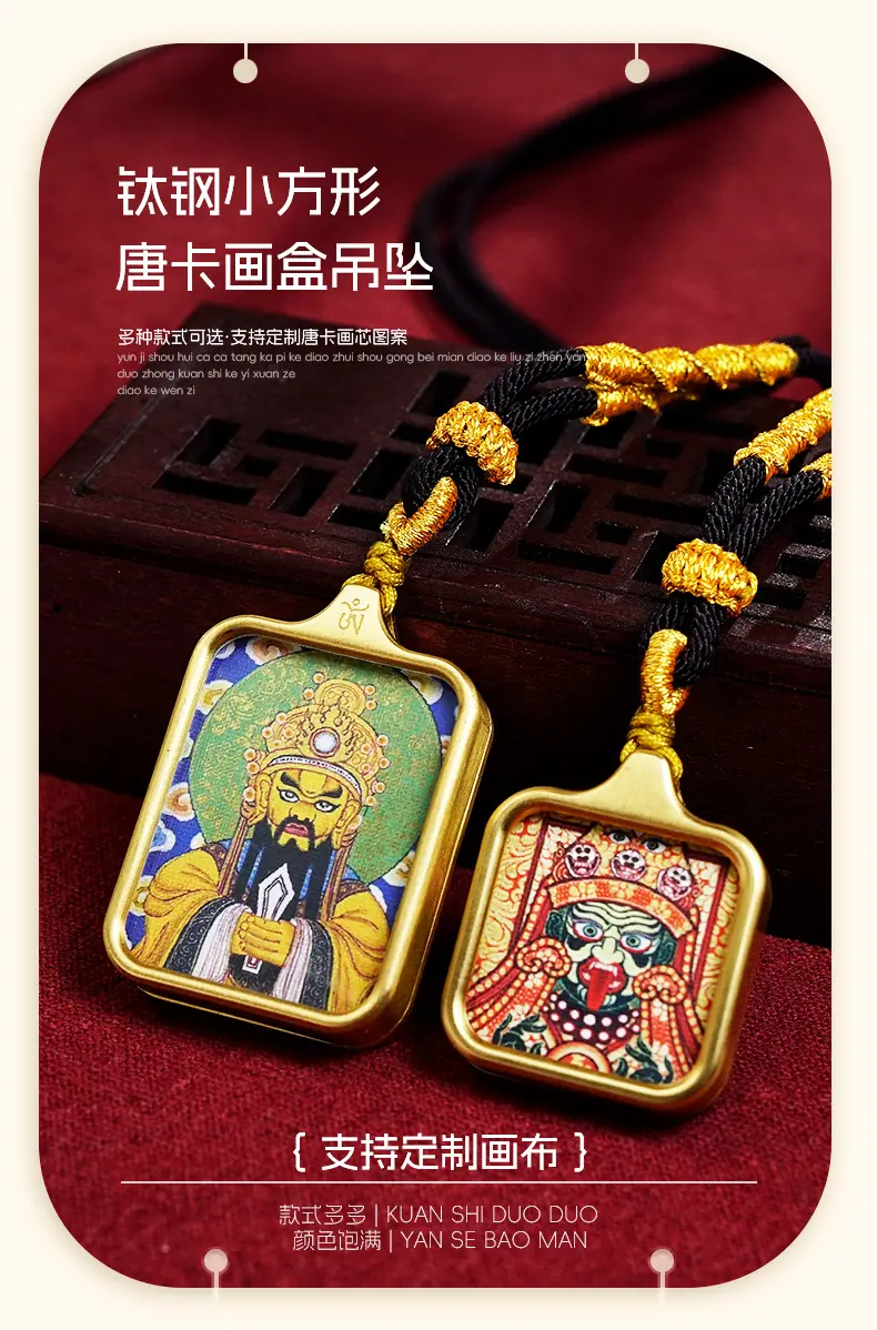 Nuevo Patrimonio Cultural Inmaterial Retro de Acero de Titanio Zakilam Huang Cai Ben Life Colgante Thangka de Cinco Maestros Collar Thangka de Estilo Nacional para Hombres y Mujeres