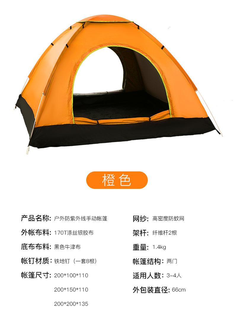 Tienda de campaña de viaje de fábrica, manual, automática, con resortes, de doble capa, individual, doble, para acampar al aire libre.