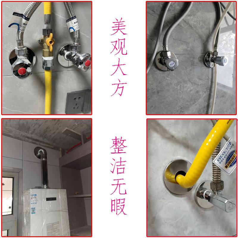 Grifo de acero inoxidable con cubierta decorativa, válvula triangular, válvula mezcladora de ducha, orificio para tubería de calefacción, orificio para pared, tapa dividida