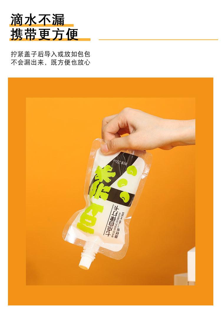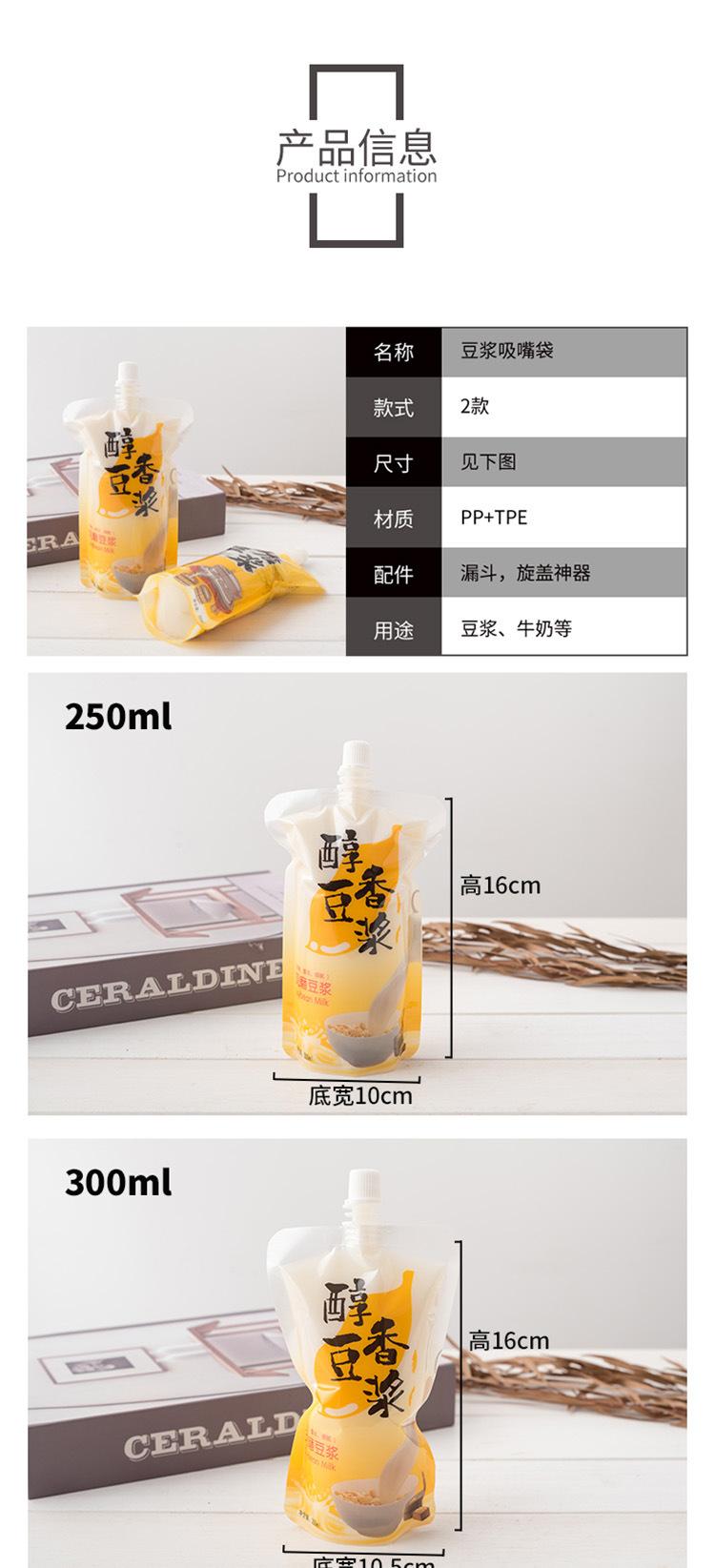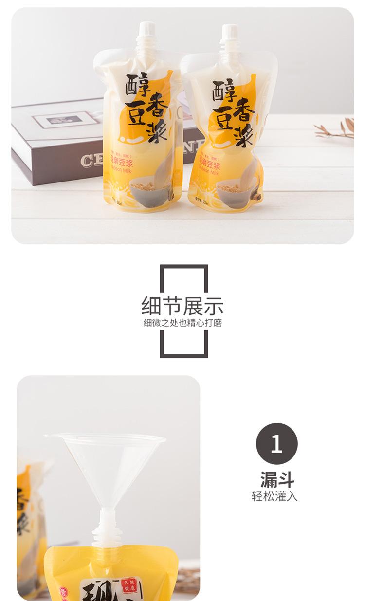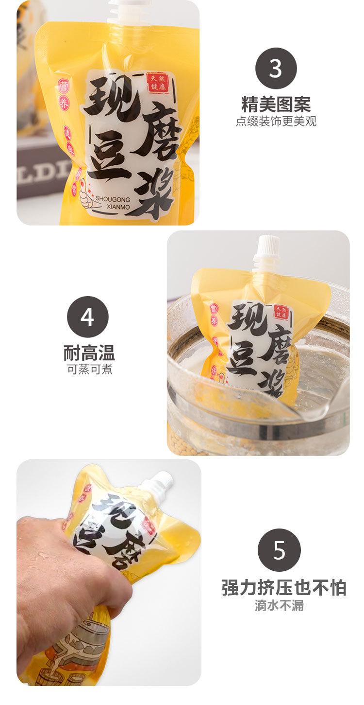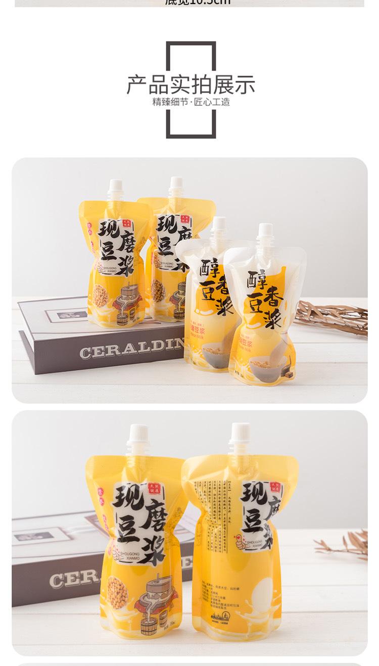Bolsa de envasado de leche de soja personalizada, bolsa con boquilla independiente, para desayuno para llevar, vaso desechable y práctico para leche de soja recién molida para uso comercial.