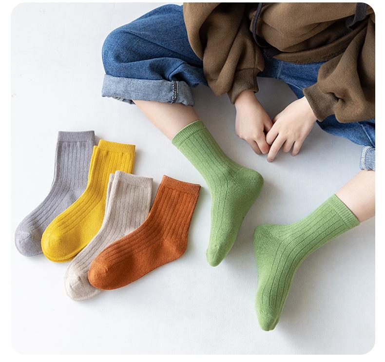 Calcetines para Niños, Calcetines Deportivos Transpirables de Otoño a la Moda, Calcetines de Algodón a Rayas de Color Sólido Caramelo para Niños, Calcetines de Media Caña al Por Mayor para Niños Pequeños