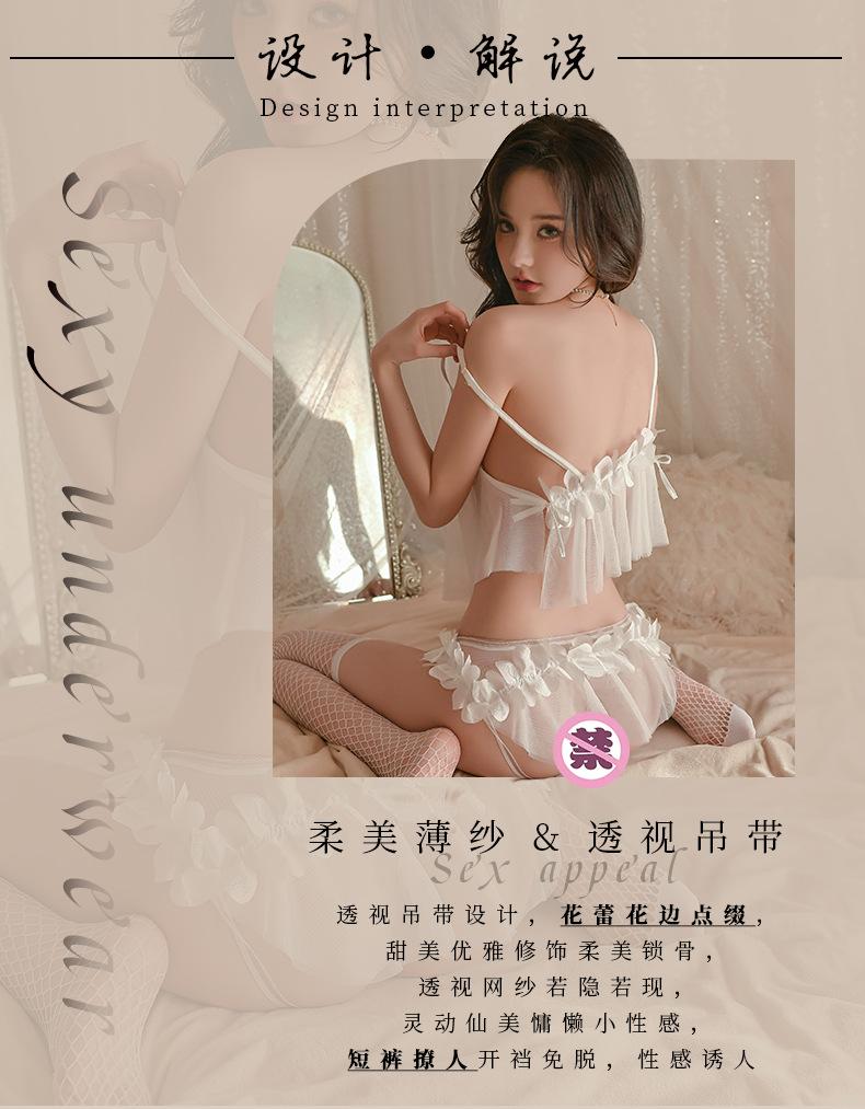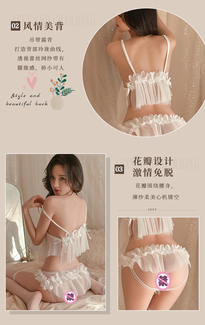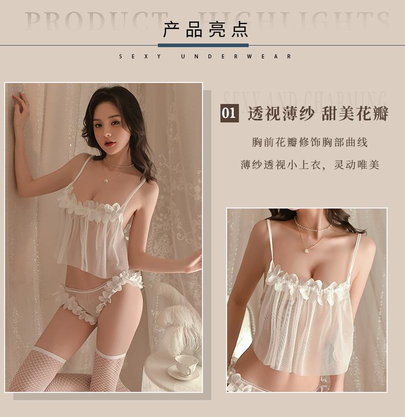 Compra Fan Lei lencería sexy sexy pétalo malla pijamas de mujer perspectiva halter sin espalda tentación encaje ropa de casa 718 al por mayor en Joom.pro