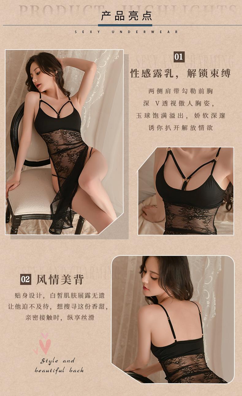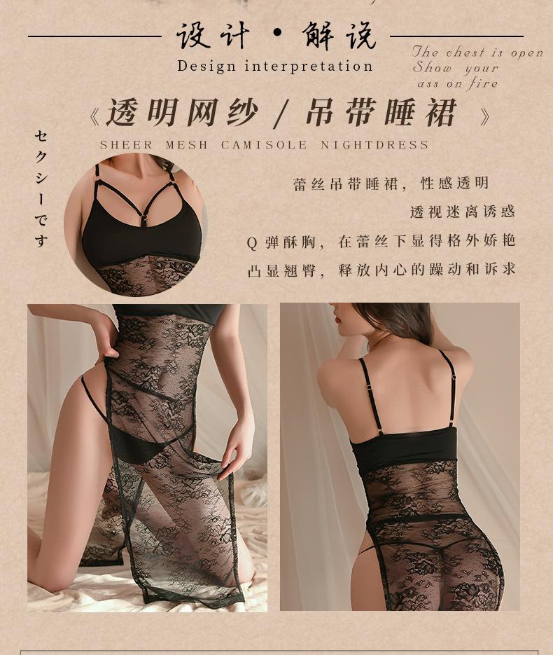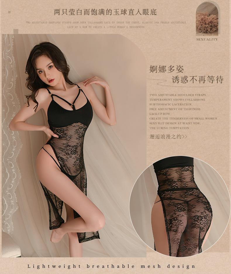 Fan Lei lencería sexy de encaje seductor camisón de mujer de abertura alta perspectiva sexy pijama con tirantes uniforme caliente 725