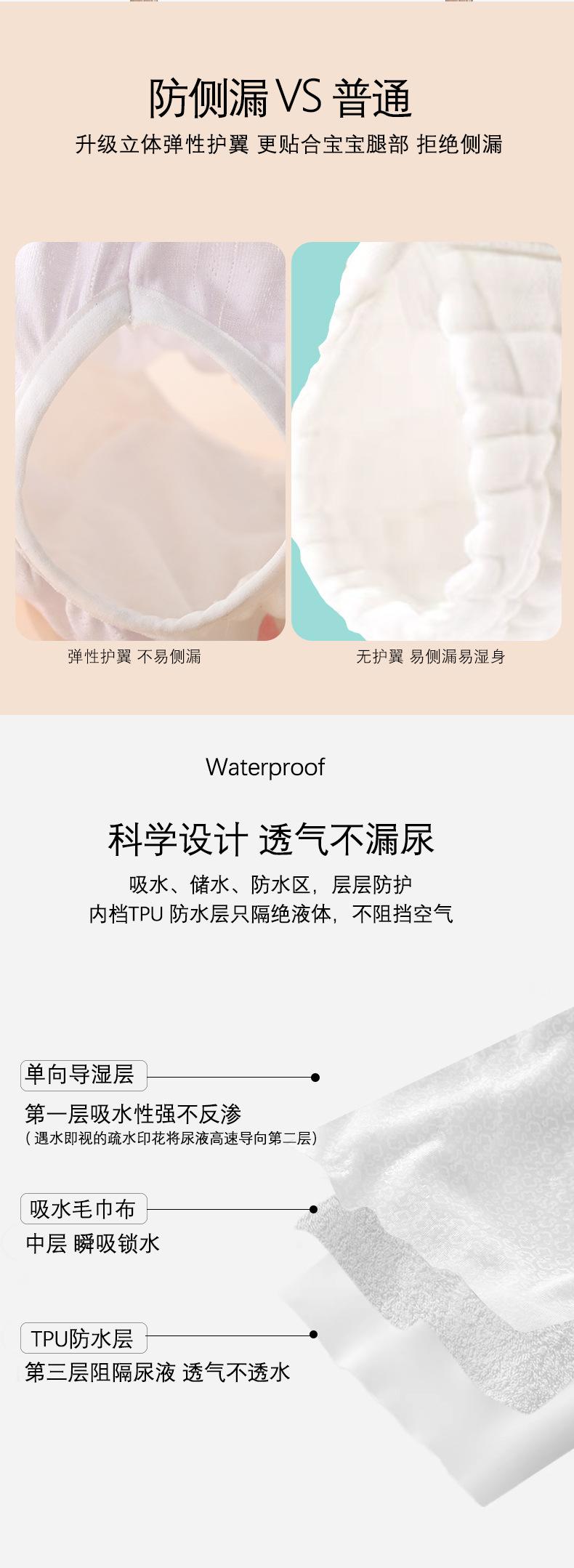 Los calzoncitos de entrenamiento no son tan absorbentes como los pañales, pero son más absorbentes que la ropa interior ordinaria. Es normal que tengan fugas cuando el volumen de orina es grande. Simplemente es incómodo mojar la orina. Pueden entrenar la conciencia del niño sobre el control de esfínteres. Las madres que les importe deben tener cuidado al comprar.
